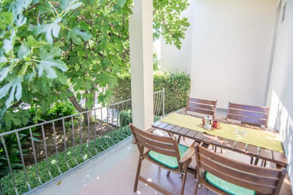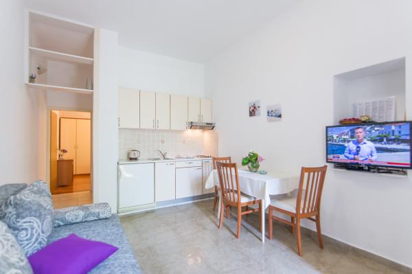 Na novo prenovljen apartma se nahaja 10 minut hoje od plaže, terasa, TV / SAT, wi-fi, klimatska naprava. Apartma s spalnico, dnevno sobo, kuhinjo in teraso.