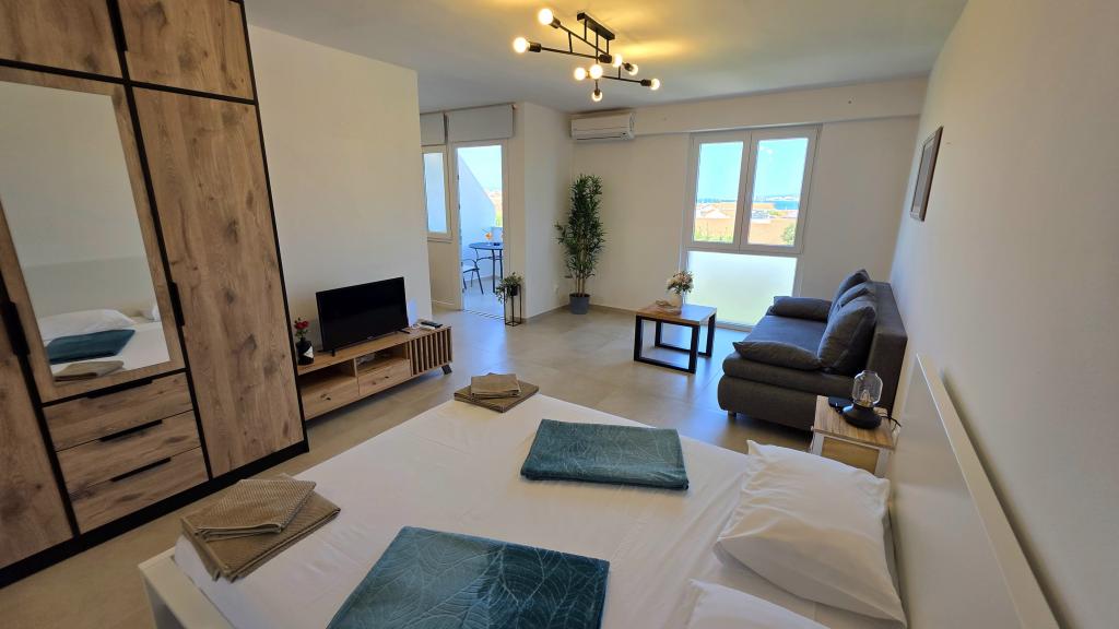 Novo prenovljeno stanovanje v središču Biograda. V bližini so vse bistvene ugodnosti, kot so restavracije, kavarne, slaščičarne, trgovine itd. Plaža je oddaljena 5 minut hoje. Z balkona se ponuja pogled na morje in središče Biograda. Stanovanje ima pomivalni in pralni stroj. Avtobusna postaja je v bližini. Stanovanje se nahaja v četrtem nadstropju stavbe brez dvigala.