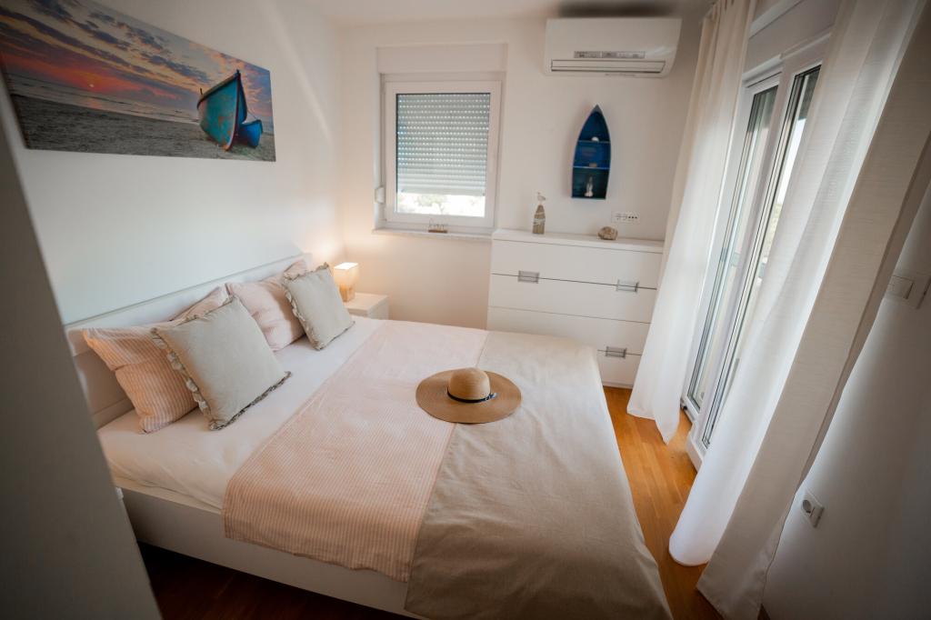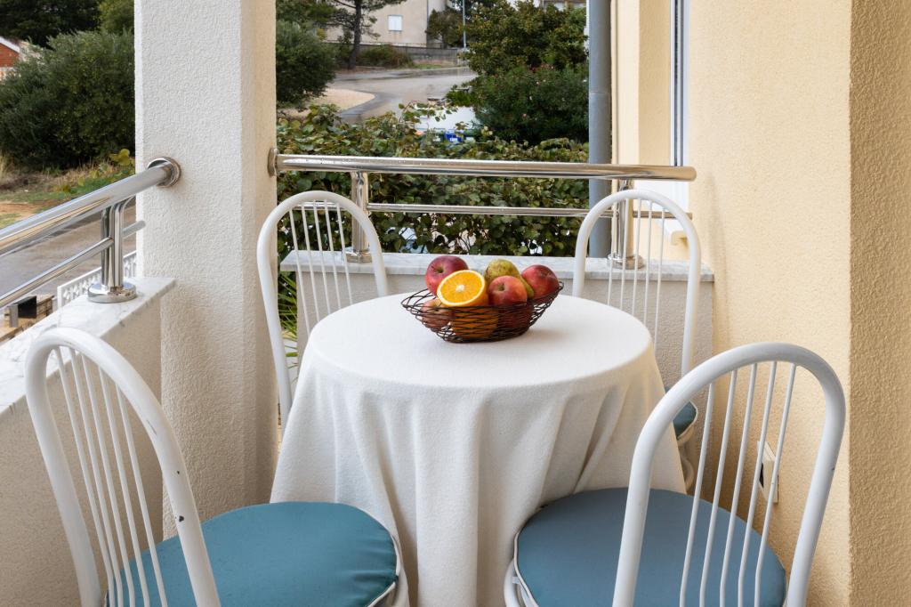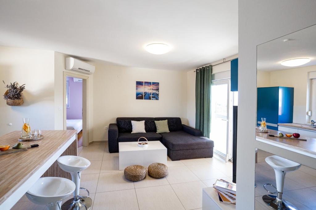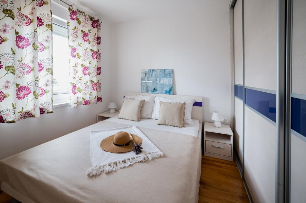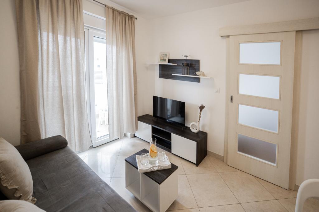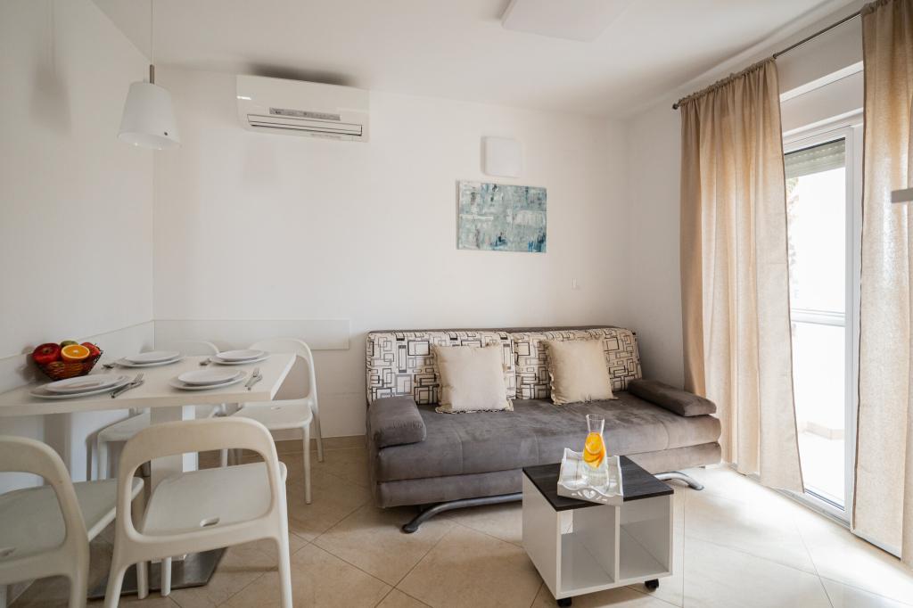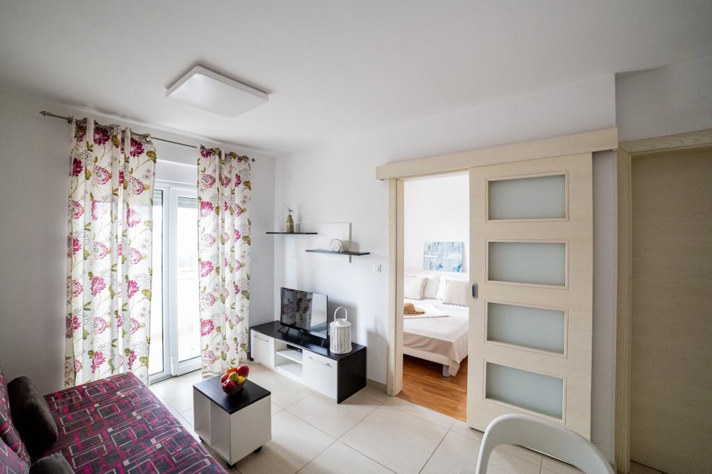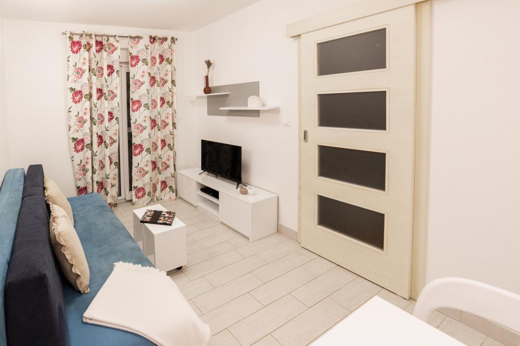 Lastniki apartmajev so odlični, prijazni, ljubeznivi, zaradi gneče smo prispeli ob 8. uri zjutraj, lastnik nas je takoj namestil v apartma, ne glede na to, kaj piše po 10. uri ali 14. uri. Odjava je bila ob 10. uri, vendar smo lahko dan izkoristili za plavanje in se izognili gneči, ker smo lahko avto pustili pri njih. Apartma je zelo lepo okrašen, z vso opremo od sušilnika za lase, pralnega stroja, kuhinja je tudi zelo dobro opremljena, tako da se počutimo kot doma. Zelo lepa terasa in pogled na morje. Postelje so udobne, na vsakem oknu pa so mreže proti komarjem, tako da nimate težav s komarji, kot se lahko zgodi. Imeli smo se zelo lepo in priporočam drugim. Hvala lastnikom.