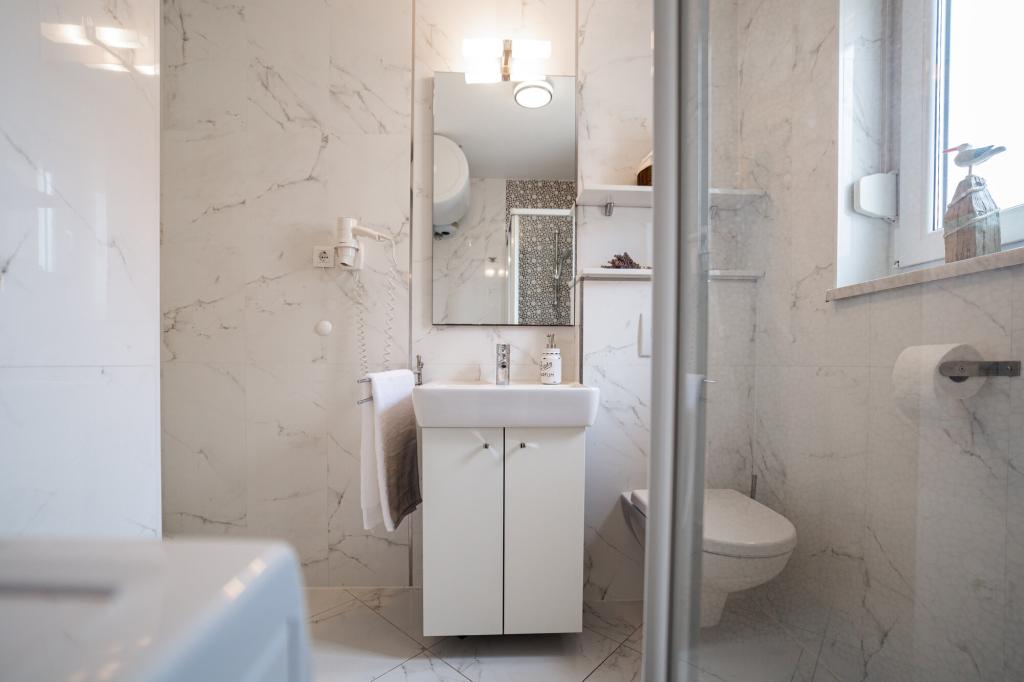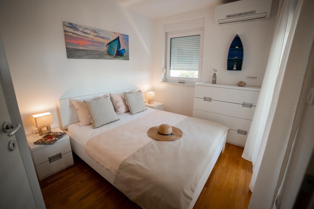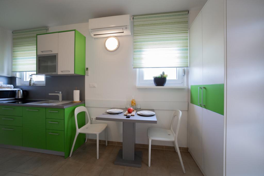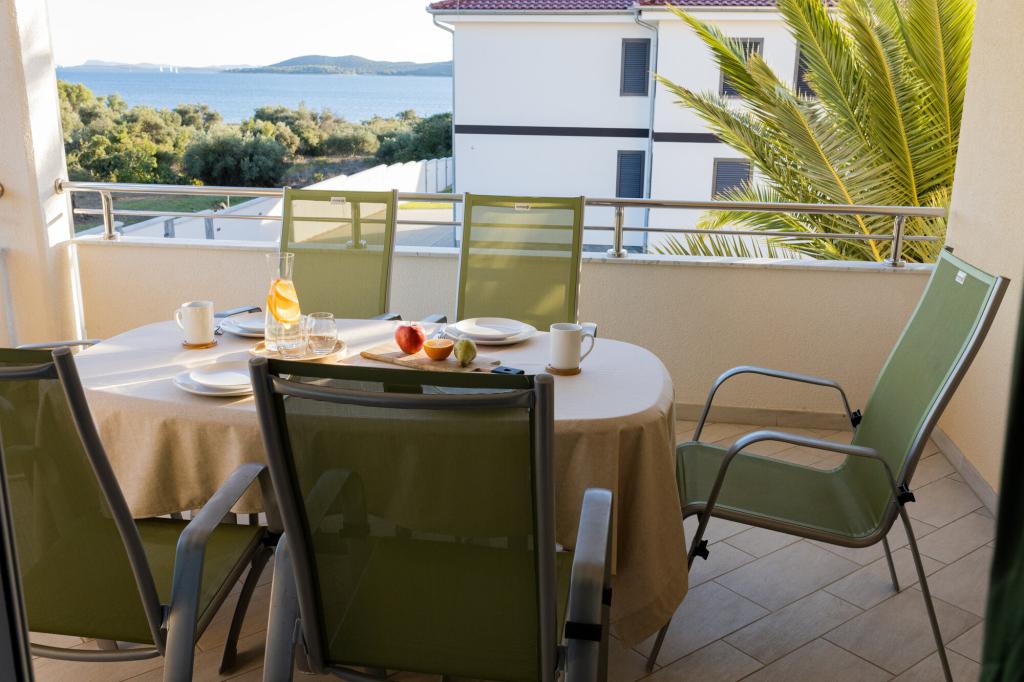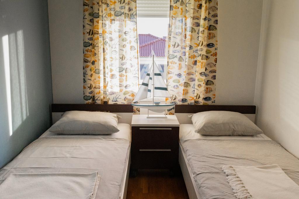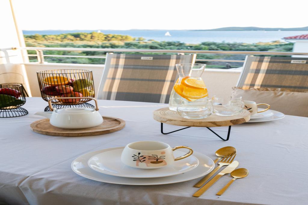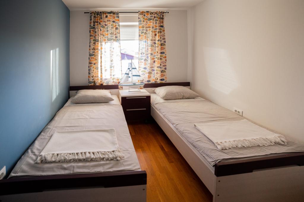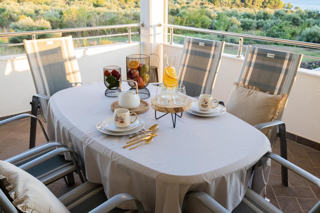 Lastniki apartmajev so odlični, prijazni, ljubeznivi, zaradi gneče smo prispeli ob 8. uri zjutraj, lastnik nas je takoj namestil v apartma, ne glede na to, kaj piše po 10. uri ali 14. uri. Odjava je bila ob 10. uri, vendar smo lahko dan izkoristili za plavanje in se izognili gneči, ker smo lahko avto pustili pri njih. Apartma je zelo lepo okrašen, z vso opremo od sušilnika za lase, pralnega stroja, kuhinja je tudi zelo dobro opremljena, tako da se počutimo kot doma. Zelo lepa terasa in pogled na morje. Postelje so udobne, na vsakem oknu pa so mreže proti komarjem, tako da nimate težav s komarji, kot se lahko zgodi. Imeli smo se zelo lepo in priporočam drugim. Hvala lastnikom.