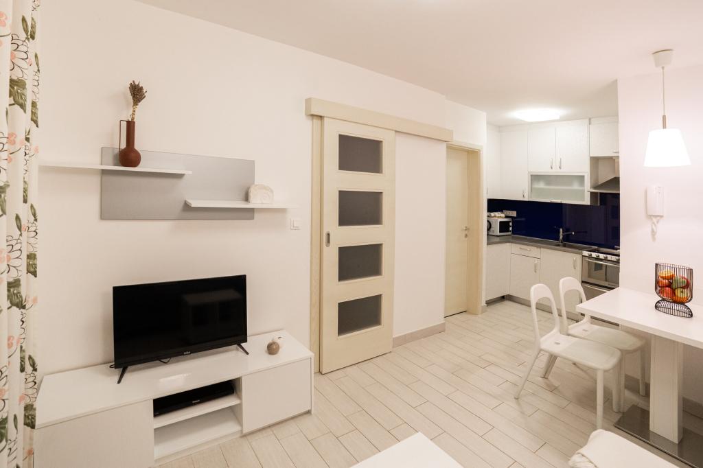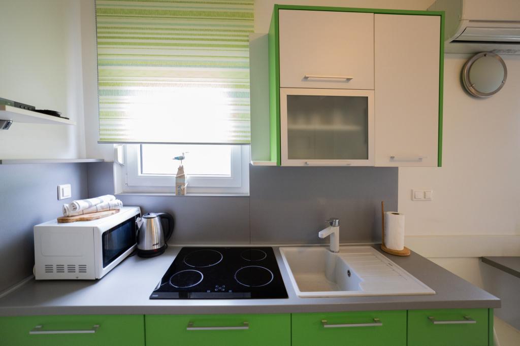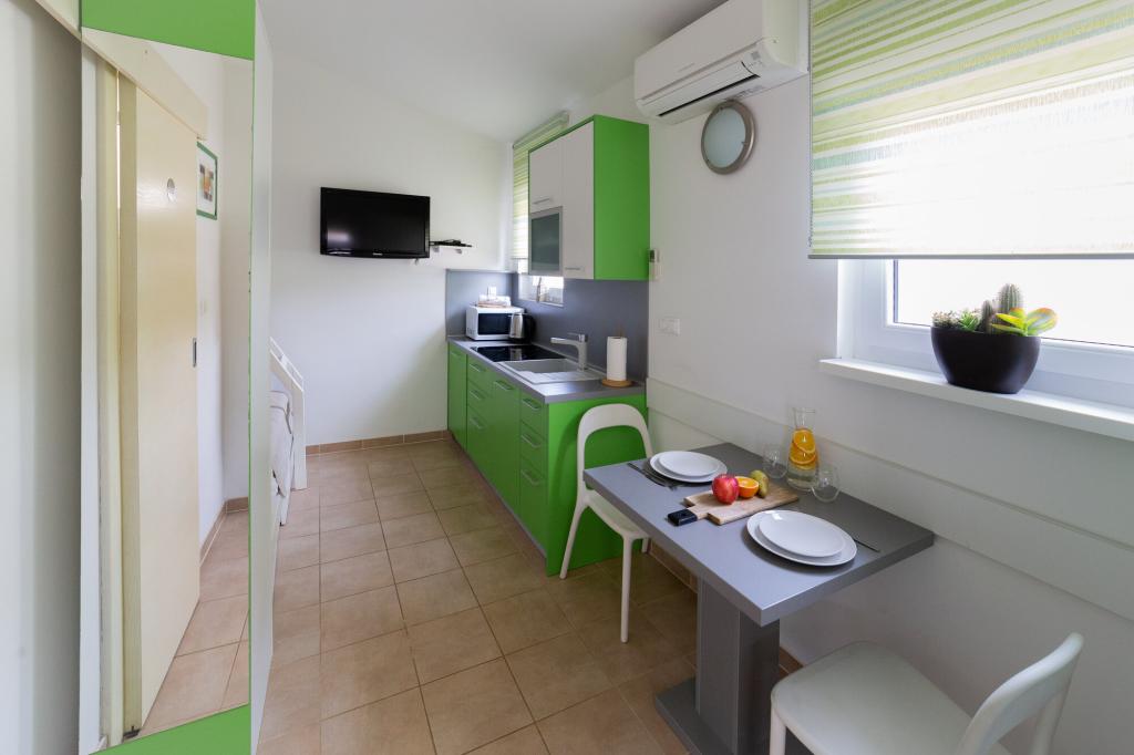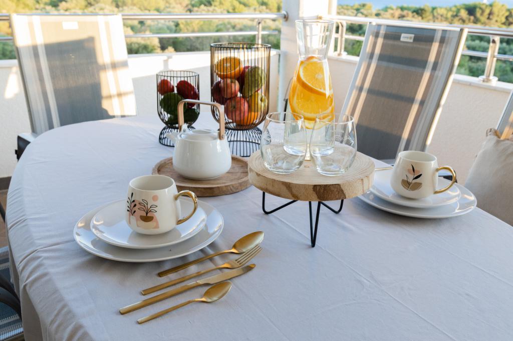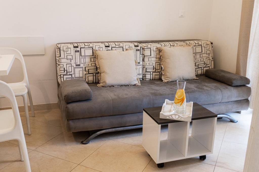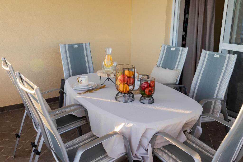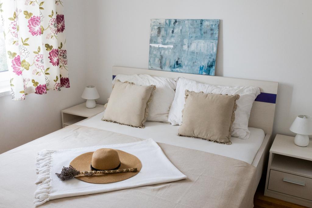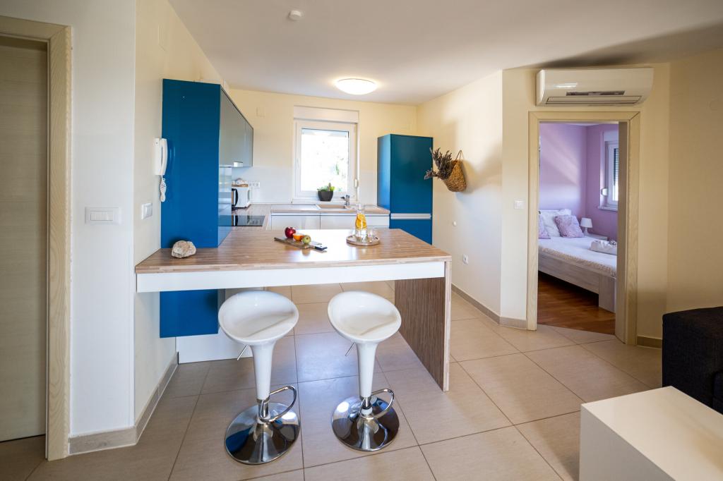 Lastniki apartmajev so odlični, prijazni, ljubeznivi, zaradi gneče smo prispeli ob 8. uri zjutraj, lastnik nas je takoj namestil v apartma, ne glede na to, kaj piše po 10. uri ali 14. uri. Odjava je bila ob 10. uri, vendar smo lahko dan izkoristili za plavanje in se izognili gneči, ker smo lahko avto pustili pri njih. Apartma je zelo lepo okrašen, z vso opremo od sušilnika za lase, pralnega stroja, kuhinja je tudi zelo dobro opremljena, tako da se počutimo kot doma. Zelo lepa terasa in pogled na morje. Postelje so udobne, na vsakem oknu pa so mreže proti komarjem, tako da nimate težav s komarji, kot se lahko zgodi. Imeli smo se zelo lepo in priporočam drugim. Hvala lastnikom.