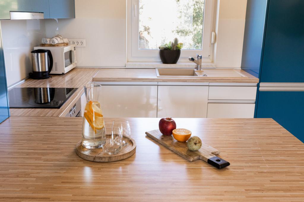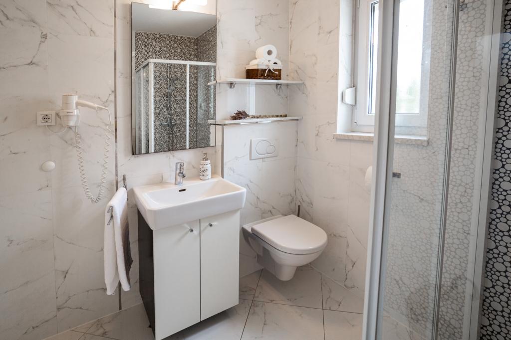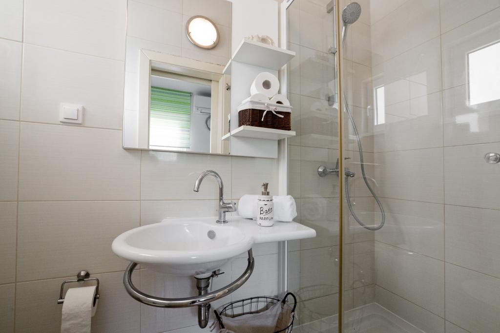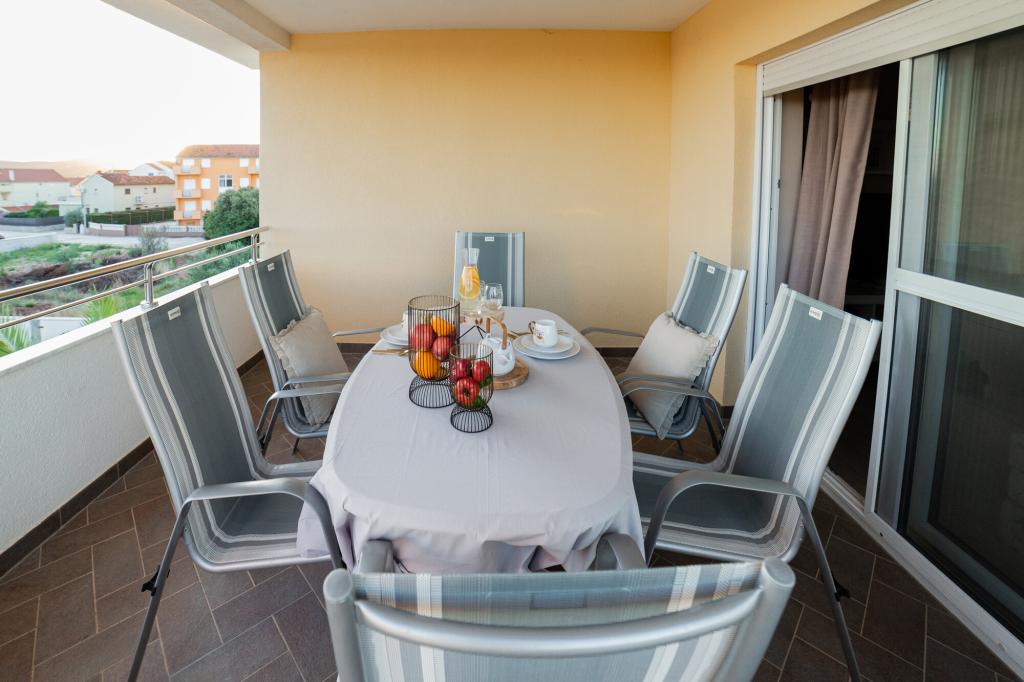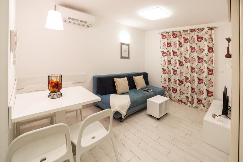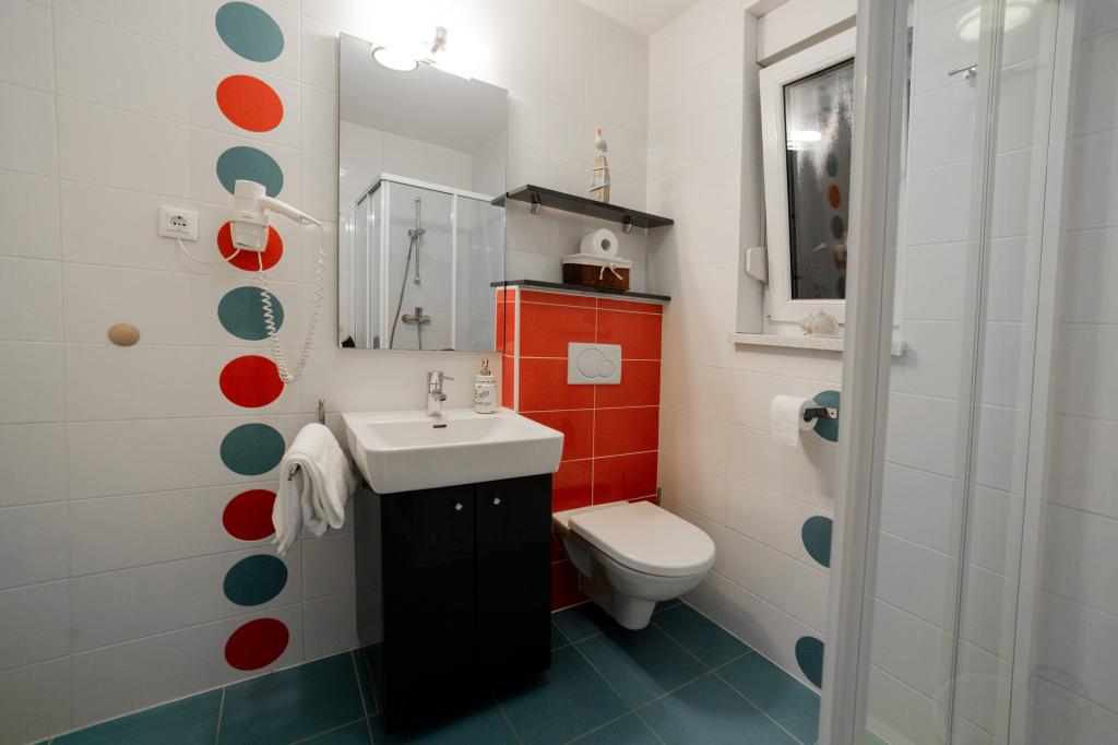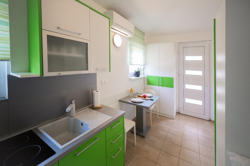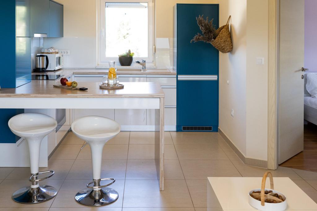 Lastniki apartmajev so odlični, prijazni, ljubeznivi, zaradi gneče smo prispeli ob 8. uri zjutraj, lastnik nas je takoj namestil v apartma, ne glede na to, kaj piše po 10. uri ali 14. uri. Odjava je bila ob 10. uri, vendar smo lahko dan izkoristili za plavanje in se izognili gneči, ker smo lahko avto pustili pri njih. Apartma je zelo lepo okrašen, z vso opremo od sušilnika za lase, pralnega stroja, kuhinja je tudi zelo dobro opremljena, tako da se počutimo kot doma. Zelo lepa terasa in pogled na morje. Postelje so udobne, na vsakem oknu pa so mreže proti komarjem, tako da nimate težav s komarji, kot se lahko zgodi. Imeli smo se zelo lepo in priporočam drugim. Hvala lastnikom.