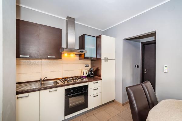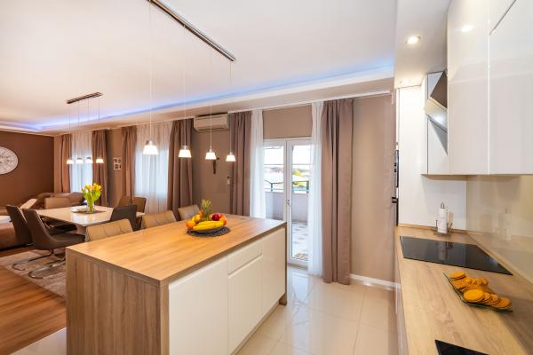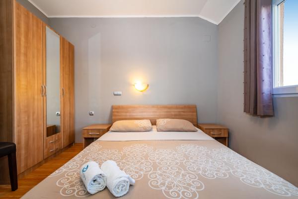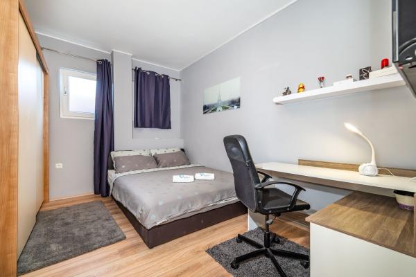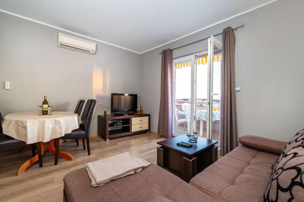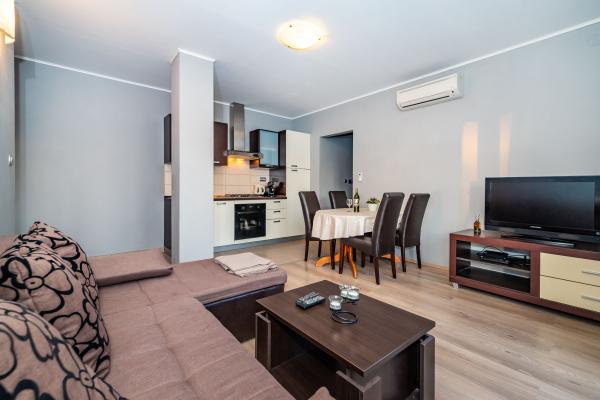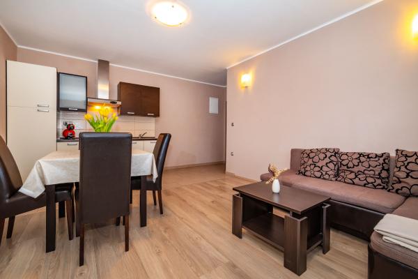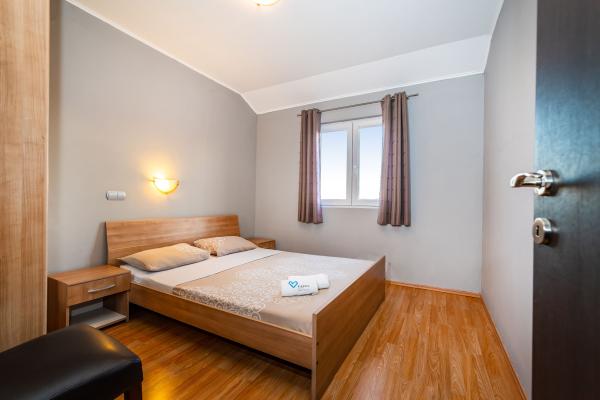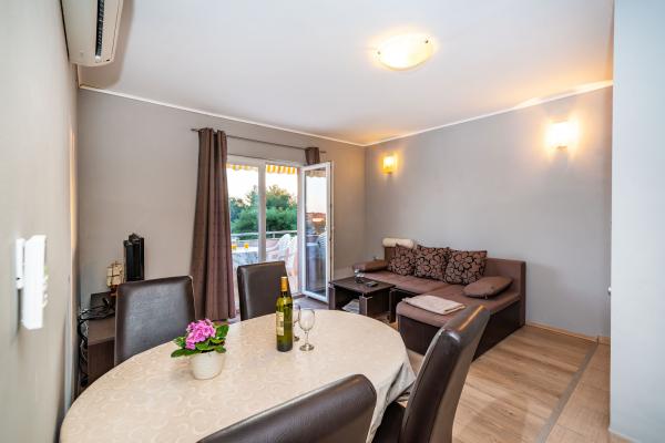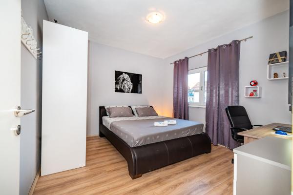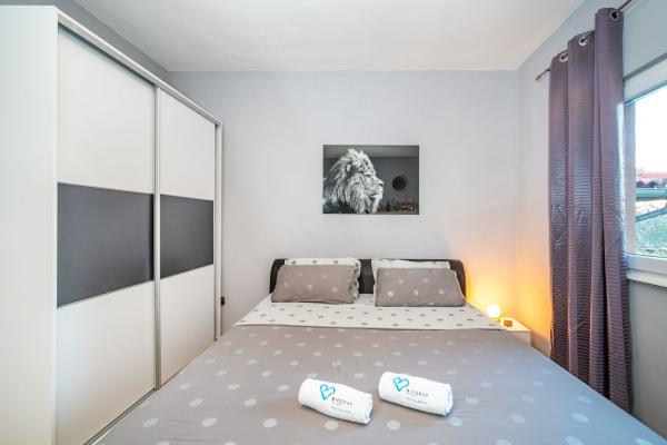 Novo prenovljeni, moderno opremljeni, klimatizirani apartmaji v bližini nakupovalnega središča Bure, v mirnem delu mesta, poleg igrišča. Plaža in center mesta sta oddaljena približno 900 m oziroma 10-15 minut hoje. Objekt ima zunanji žar (kamin), kjer lahko uživate. Apartma 6 2 se nahaja v pritličju objekta in je bil leta 2019 popolnoma prenovljen.