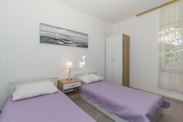Popolnoma prenovljen in opremljene apartmaje v mirnem delu Biograda. Le 50 metrov od nakupovalnega središča in otroškimi igrali, in 5 minut hoje do plaže. Apartmaji se nahajajo v pritličju z dvorišča, in je primeren za starejše in ljudi z lažjimi motnjami v telesnem razvoju. V ceno je vključena turistična taksa, klimatsko napravo in uporabo pralnega stroja. Možnost povezuje dve sobi s kopalnico za večje skupine. Mi smo se sestali z našimi prvimi gosti in boste uživali čare Biograda.
