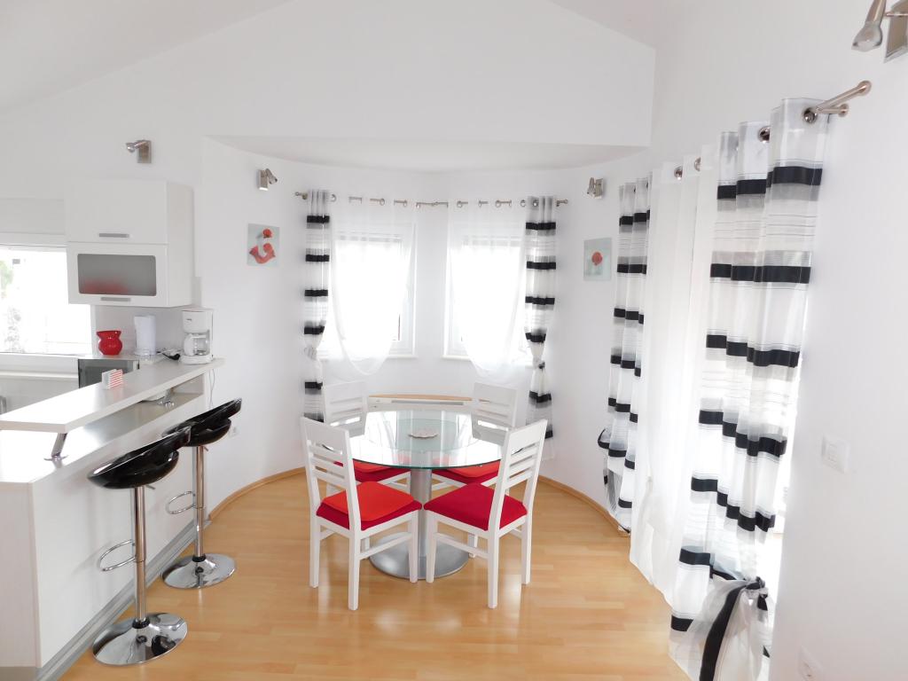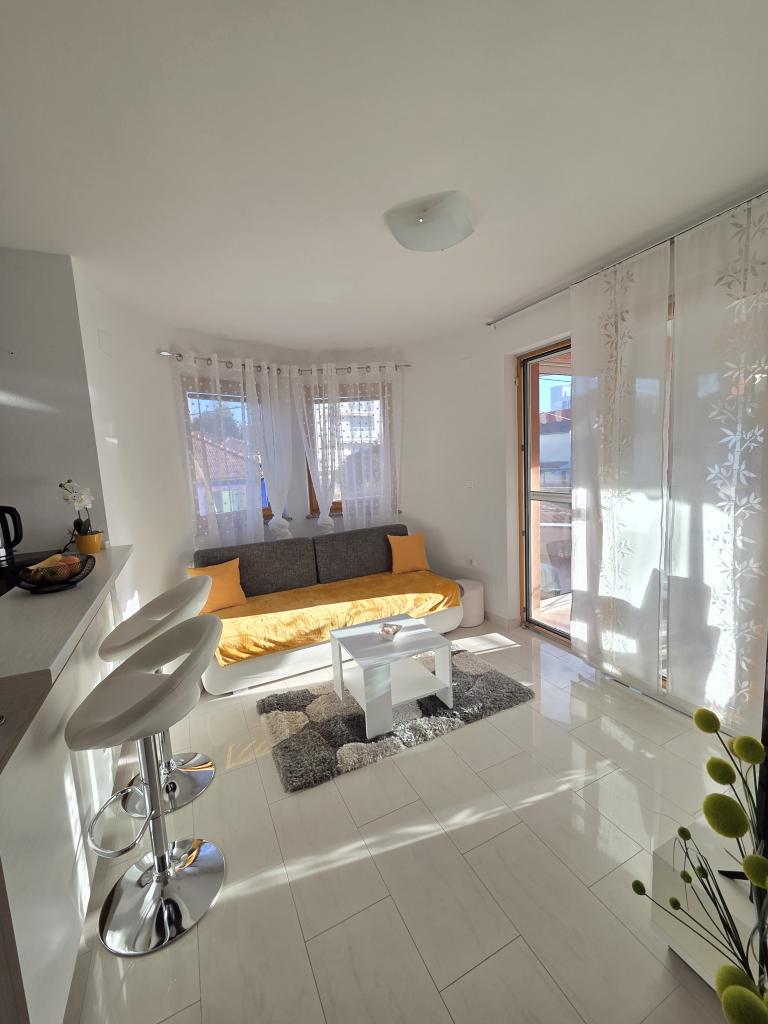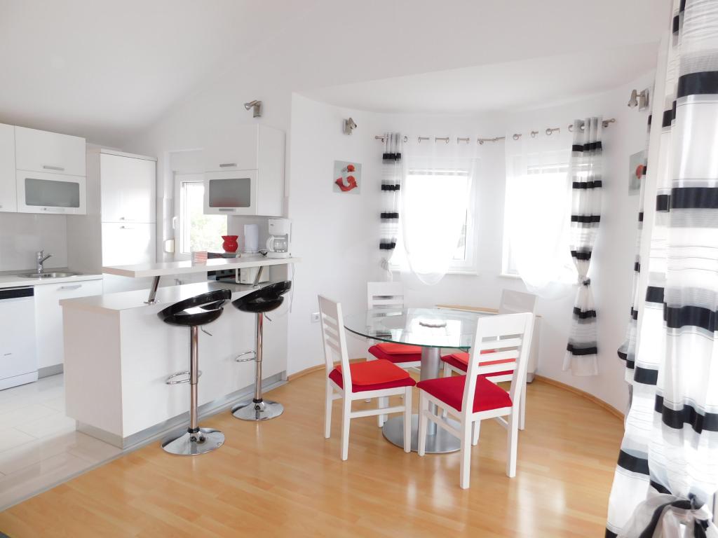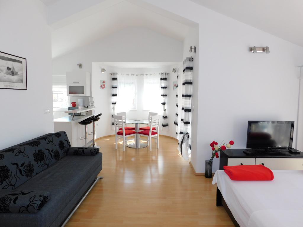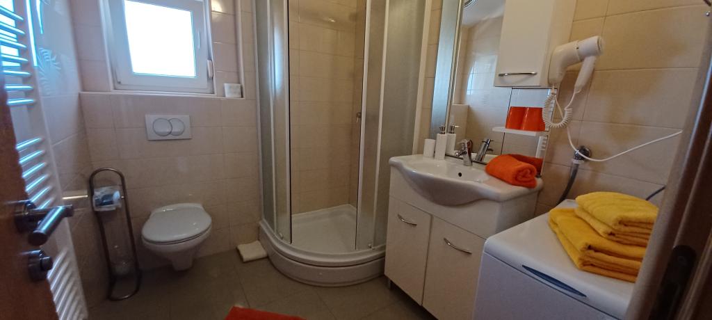 Bivali smo v zelenem apartmaju za 4 osebe. Stanovanje je lepo, moderno, odlična lokacija, a za ceno 120 € smo pričakovali nekaj več. Manjkajo pomembne stvari, zaradi katerih se gostje vračajo ali se ne vračajo. Za navedeno ceno smo pričakovali vsaj komplet 6 kozarcev, 6 krožnikov, žlic in drugega jedilnega pribora. Tako kot v drugih stanovanjih, kjer smo včasih bivali v kuhinji, bi moral biti prašek za pomivanje posode, malo sladkorja, soli, po možnosti začimbe, malo olja, kisa in drugih potrebščin, ki so dovolj za prvi trenutek. V nekaterih drugih apartmajih goste pričakajo s skledo sadja ali steklenico vina. Na terasi je tudi senčnik in udobni stoli. Terasa zato ni uporabna. V dnevni sobi je čudovit kavč, vendar je precej neprijeten, tako kot postelja v otroški sobi. Televizija ima le nekaj osnovnih televizijskih programov. Vse skupaj lepo stanovanje, prijazen gostitelj, ni pa nobene dodatne storitve, ki bi upravičila tako visoko ceno.