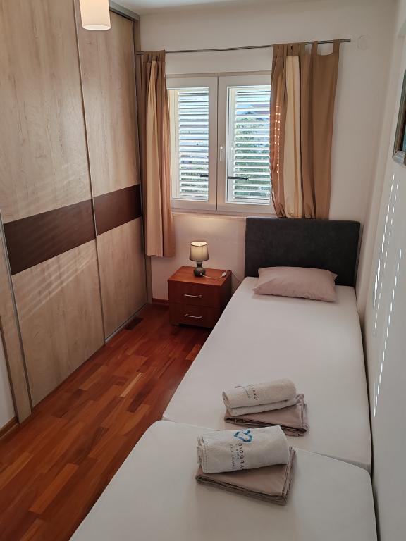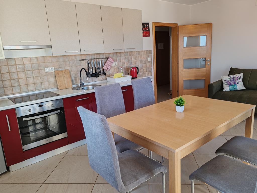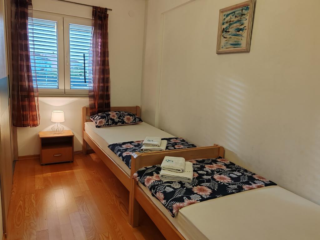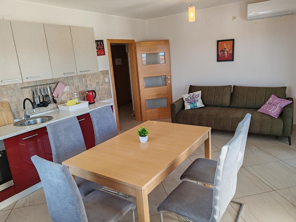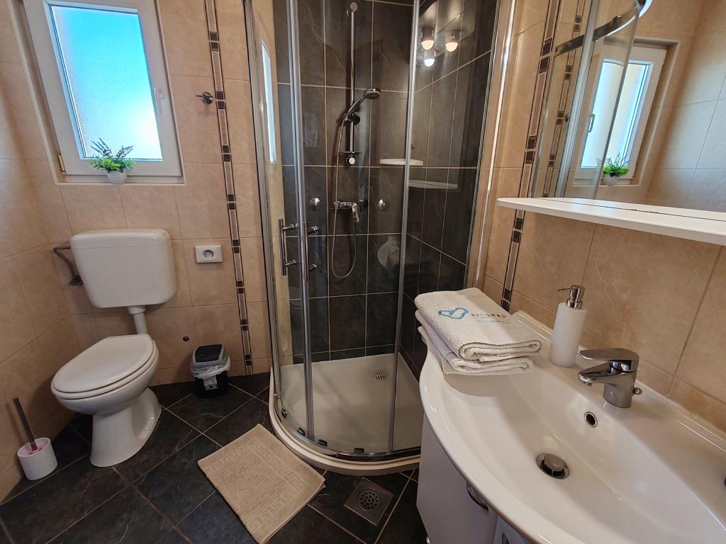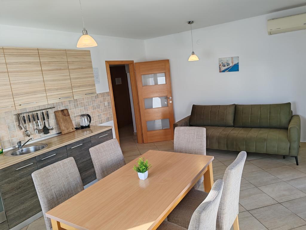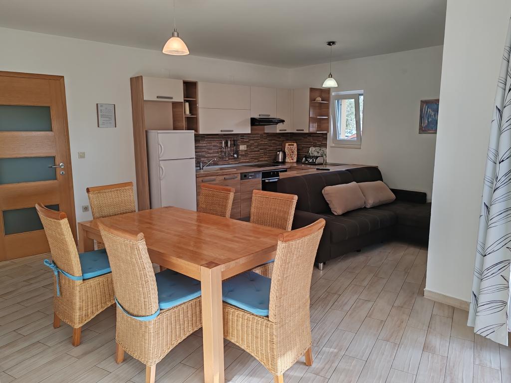 Priporočam vseh deset. Čudovito stanovanje, prostorno, popolnoma opremljeno, z vsem, kar potrebujete. Bilo nas je šest, dva odrasla in štirje otroci. Na voljo so bila 4 kolesa, možnost peke na žaru, a je nismo izkoristili. Lastnik je prijazen, ustrežljiv in ustrežljiv. Komunikacija hitra in brez težav. Varščino smo plačali, prejeli smo tudi potrdilo o plačilu kavcije. V bližini je plaža Kumenat, precej veliki kamni v vodi, z otroki smo šli tudi na bližnjo plažo Soline, kjer so bile restavracije, sprehajališča, atrakcije za otroke, voda je bila dolgo časa majhna, idealna za otroke. Res super počitnice, hvala Robert Kovačiček.