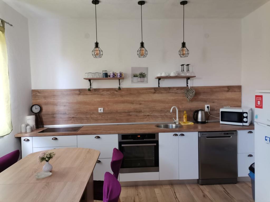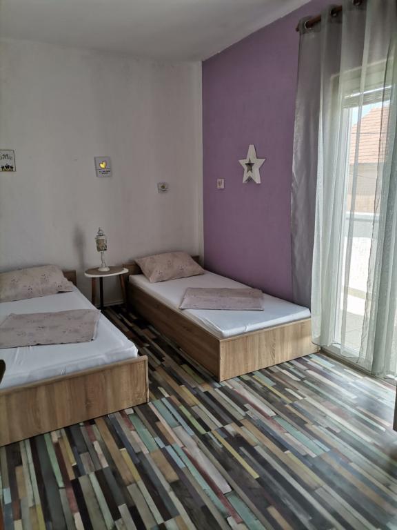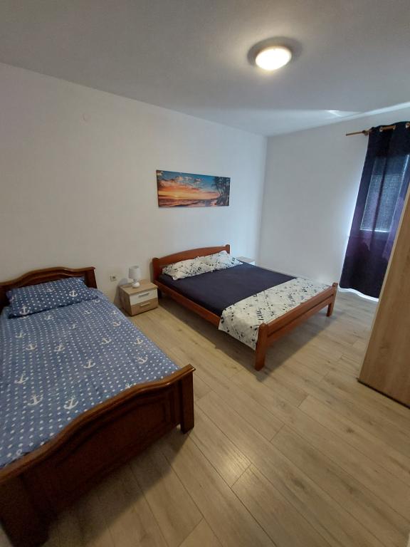 Apartmaji se nahajajo 10 min od centra do plaže v samo 3 minutah. V bližini se nahajajo tudi nakupovalni center Bure in Konzum. Apartmaji so opremljeni z vso potrebno opremo za prijetno bivanje (klimatska naprava, vsi kuhinjski aparati). Parkirišče se nahaja pred apartmajem, velika terasa pa ponuja pogled na morje. Vsak apartma ima velik balkon, v vsaki spalnici pa ima svoj balkon in pogled na morje. Lokacija apartmaja je v mirnem delu mesta, daleč od hrupa in glasne glasbe nočnih klubov. Apartma je prostoren in ponuja vse, kar potrebujete za dober in prijeten oddih v srcu Dalmacije.