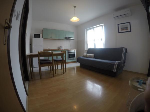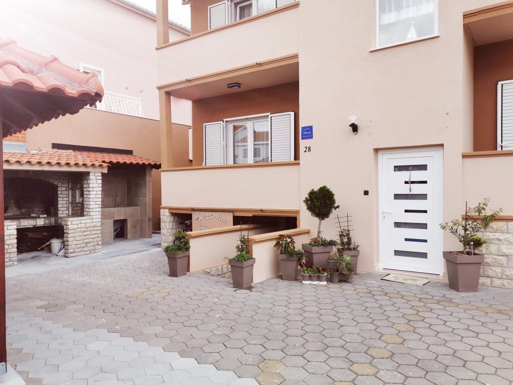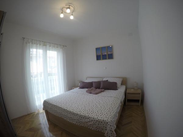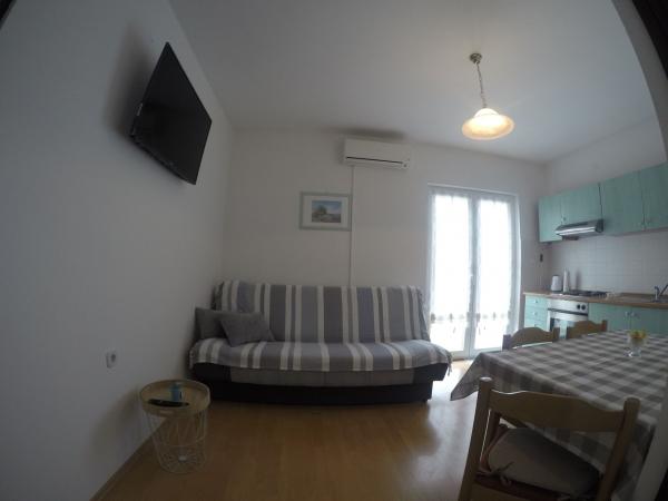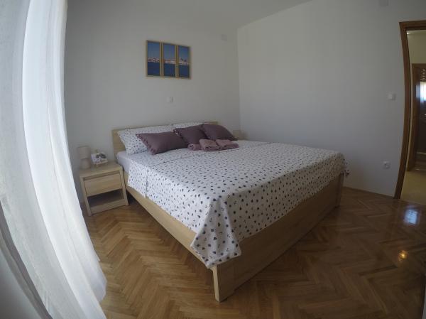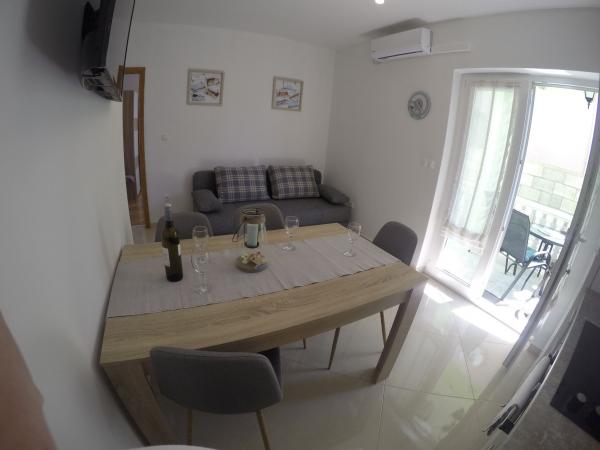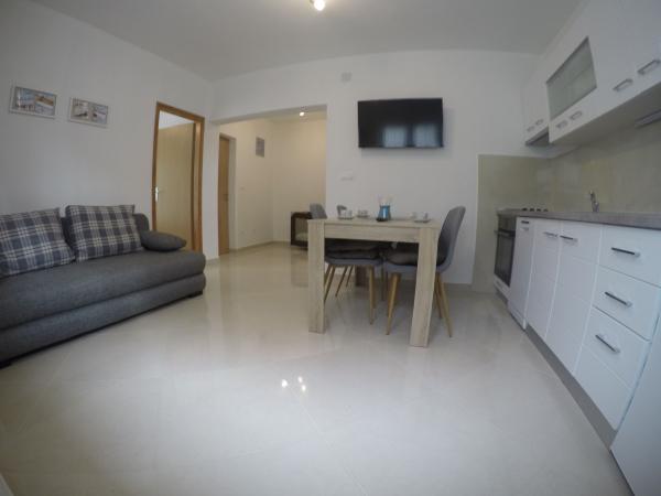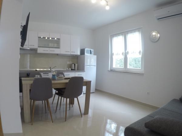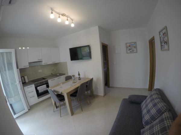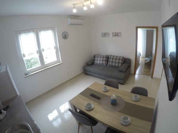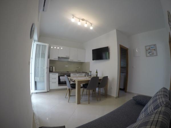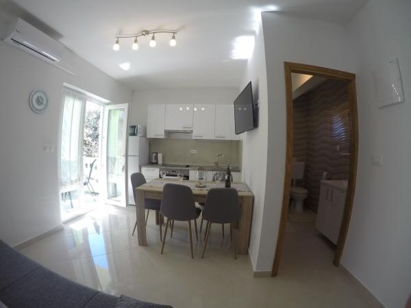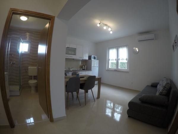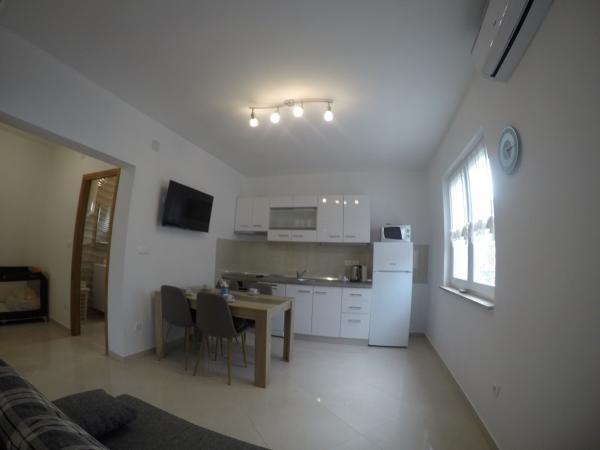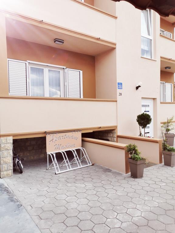 Apartmaji Maslina se nahajajo v mirnem delu mesta, približno 10 minut hoje do najbližje plaže Soline. Hiša ima 4 apartmaje, velikosti 3 x 40 m2 z balkoni in terasami, 1 x 45 m2 z balkonom. Vsi apartmaji so opremljeni s klimatsko napravo, brezplačnim WIFI, Sat, / TV, parkirnim mestom in žarom na dvorišču ter opremo, primerno za majhne otroke. Za večje družine je možno najeti več prostih stanovanj naenkrat, za manjše število ljudi pa je cena ugodnejša.