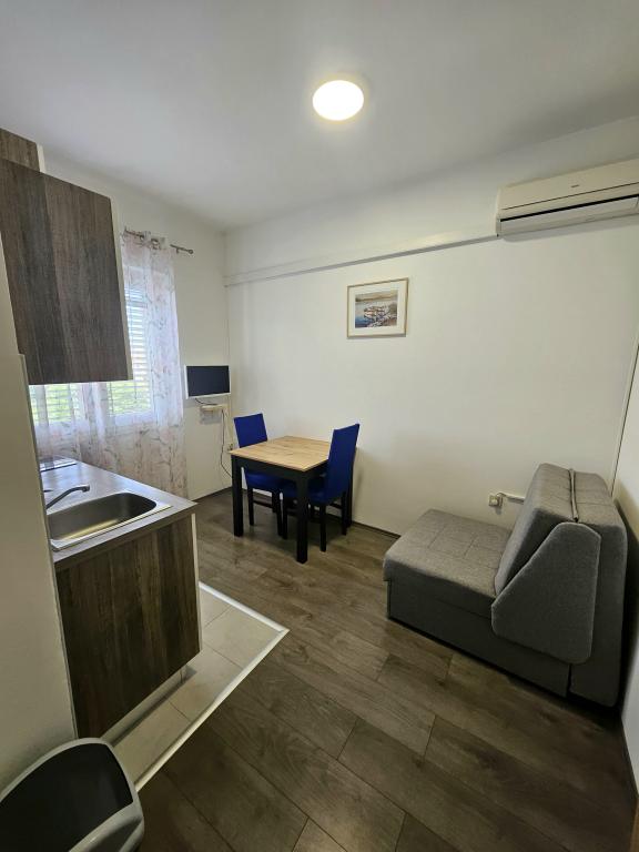 Stanovanje je prostorno, čisto in urejeno, novo pohištvo. Posteljnina in brisače čiste in dišeče, postelje udobne. Velika terasa z delnim pogledom na morje, v mirnem in tihem okolju. Gostitelji so izjemno prijazni. Parkirišče na dvorišču, v senci. Ima vse, kar potrebujete, da se počutite kot doma.