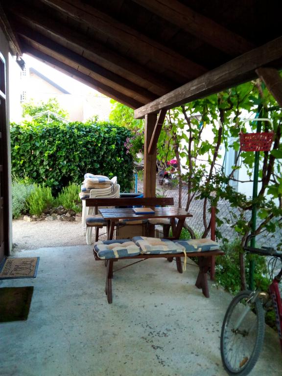 Na dvorišču je zidan žar z mizo za 8 oseb, gugalnico in majhno mizico za počitek in pitje kave. Domačin je gostom vedno na voljo, saj je stalno prisoten v objektu, kjer se nahajajo apartmaji. Možnost pobiranja gostov na avtobusni postaji, če prihajajo z avtobusom.