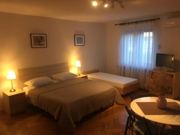 Apartmaji v centru, ki se nahaja 2-3 minut hoje od vseh plažah mesta. Hiša je v borovem gozdu, ki ustvarja naravno klimo. V velikem dvorišču, ste zagotovljen parkirni prostor, in otroci lahko igrajo varno in mirno. Vsi apartmaji imajo teraso z možnostjo uporabe žara. Dobrodošli!