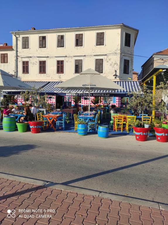 Najlepša lokacija za poletne počitnice v Biogradu..150 m do plaže Dražica glavne biogradske plaže, majhna peščena plaža 150 m, blizu plaže Soline. Vsi apartmaji imajo svojo teraso (ložo), klimatsko napravo... parkiranje, turistična taksa, wi-fi vključeni v ceno namestitve... namestitvena kapaciteta, dva apartmaja A4 plus dodatno ležišče, dva apartmaja A5 plus dodatno ležišče... Do vhoda v morje imate 3-4 minute lahkega sprehoda po promenadi... sredina glavne plaže Dražica.. Plaža Dražica povezana s plažo Soline in centrom... do centra (riva) 5 minut lahkega sprehoda po promenadi.. vsi objekti za otroke in odrasle, otroški park ob apartmaju... banka, lekarna, zdravstveni dom, tržnica, bazen 200 m, teniška igrišča, poletni kino - vse v 300 m... trgovina 100 m... center mesta - riva 300 m... povezani s promenado ob obali.