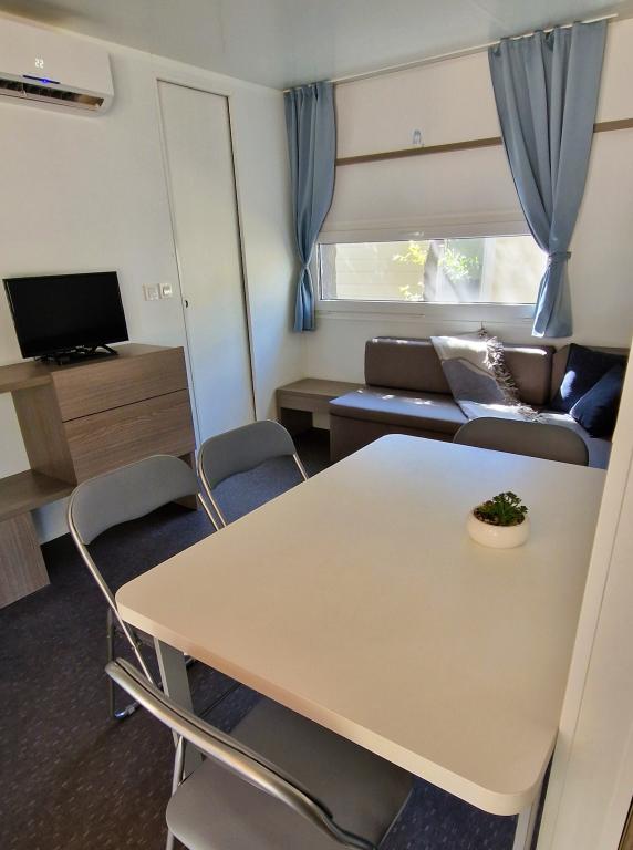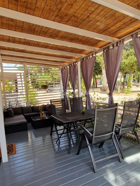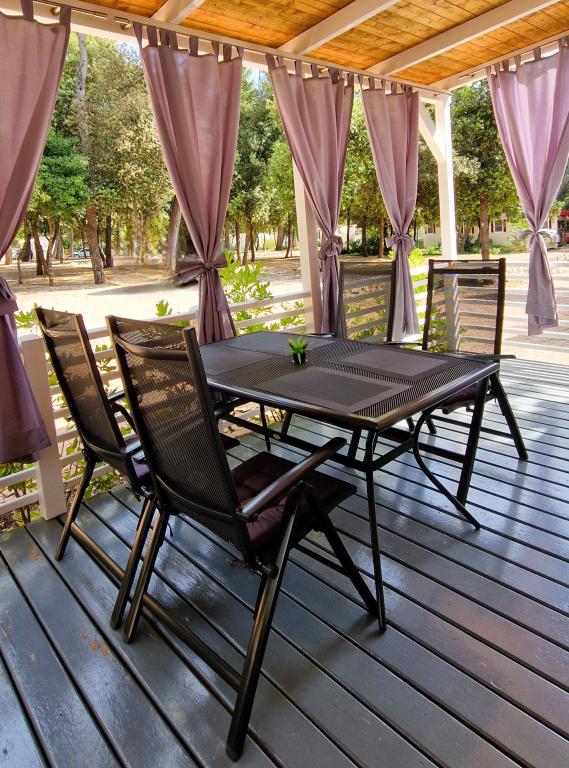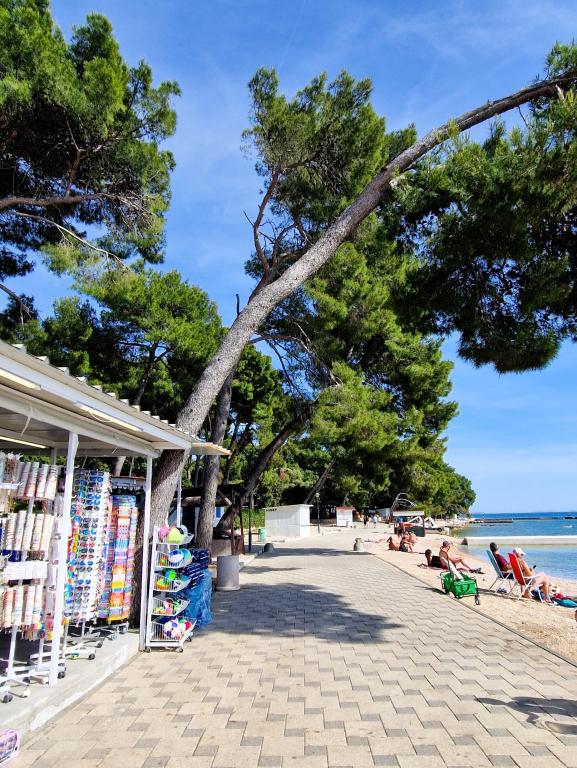 Dobrodošli v prikolici ARIA, ki se nahaja v čudovitem kampu Soline Park, v senci gostega borovega gozda tik ob eni najlepših obal Jadranskega morja. Lokacija ponuja idealno kombinacijo naravnega miru in bližine vseh ugodnosti - do središča Biograda se lahko sprehodite v le 15 minutah po urejeni obalni promenadi. Ob celotni obali kampa se raztezajo prodnate in peščene plaže, pa tudi številne kavarne, restavracije, trgovine in druge turistične znamenitosti. Prikolica ARIA se nahaja na številki 693 in je popolnoma opremljena za brezskrbno in prijetno družinsko bivanje. Vsebuje dve ločeni spalnici, dnevno sobo z raztegljivim ležiščem, kuhinjo z jedilnico in prostorno teraso, varno za otroke. Klimatska naprava, TV, zasebno parkirno mesto, pralni stroj. Namestitev je še posebej primerna za družine z otroki - terasa je ograjena, okolica pa mirna in naravna. Kamp ima tudi zabaviščni park, otroško igrišče, otroški klub ter različne dnevne in večerne animacije.