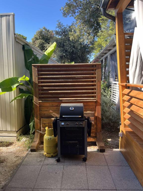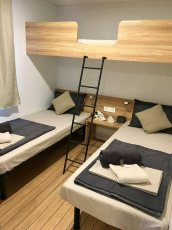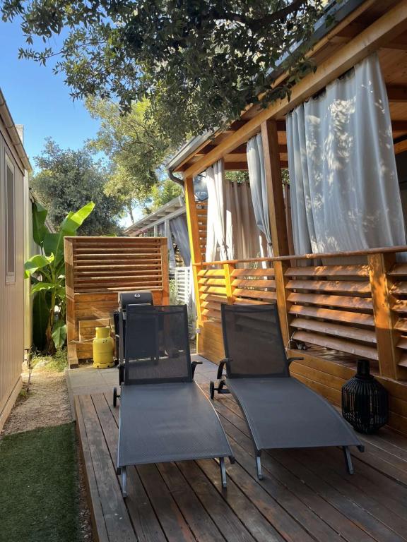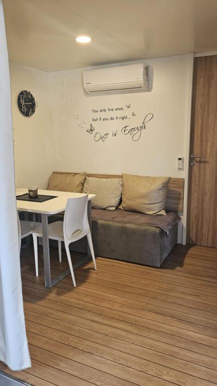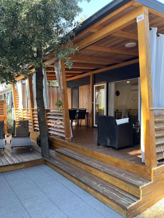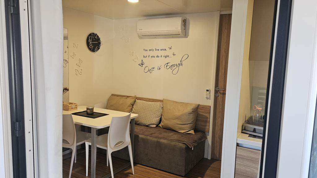 Moderna klimatizirana mobilna hišica v kampu Park Soline, le nekaj korakov od plaže in 15 minut hoje do središča Biograda. Ponuja 2 spalnici, kuhinjo, dnevno sobo, 2 kopalnici in pokrito teraso z vrtnim pohištvom. Brezplačen brezžični internet, parkirišče, otroška zabava, športna igrišča in mediteranska restavracija na kraju samem. Idealna za družine ali pare, ki iščejo sprostitev v senci borovcev, blizu vseh glavnih znamenitosti.