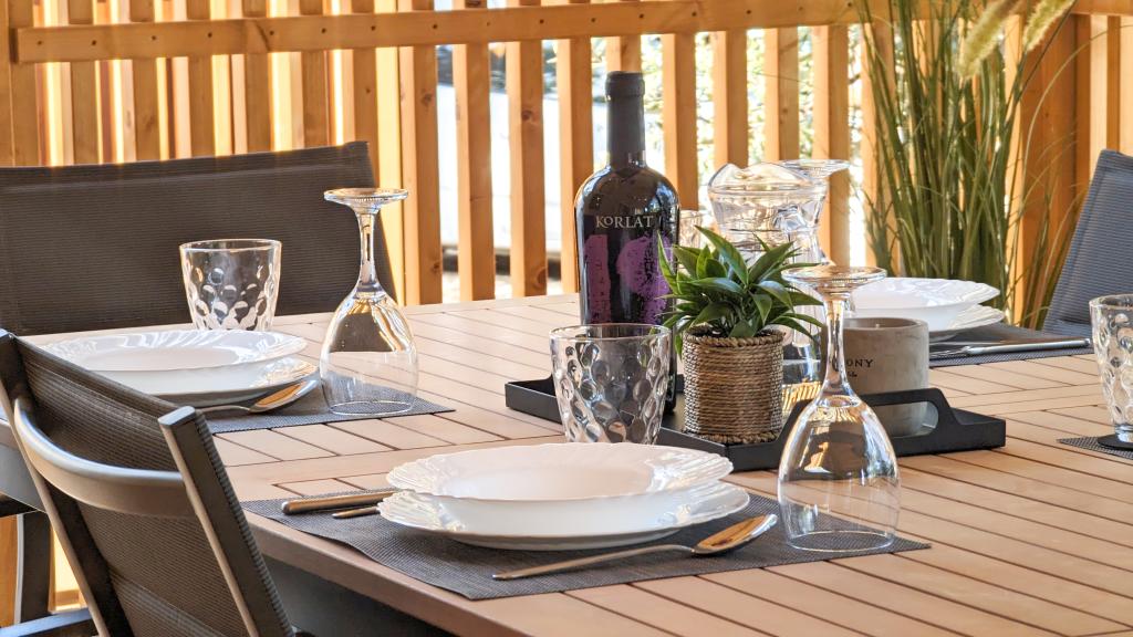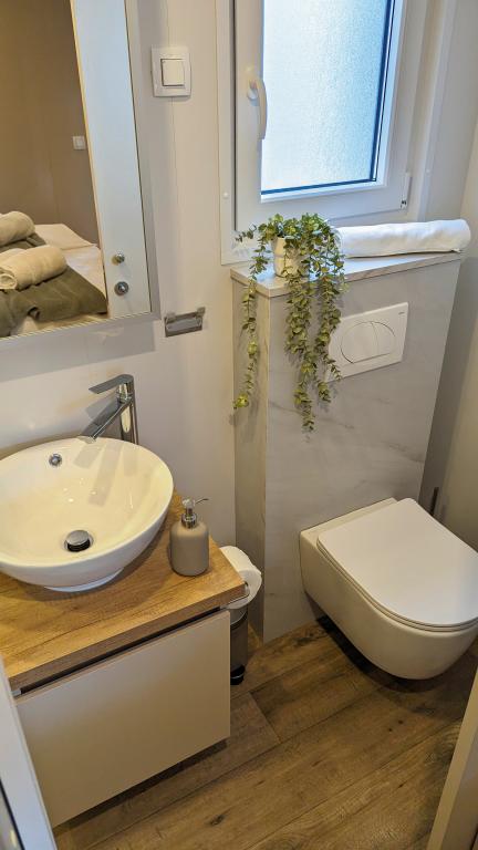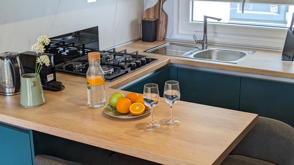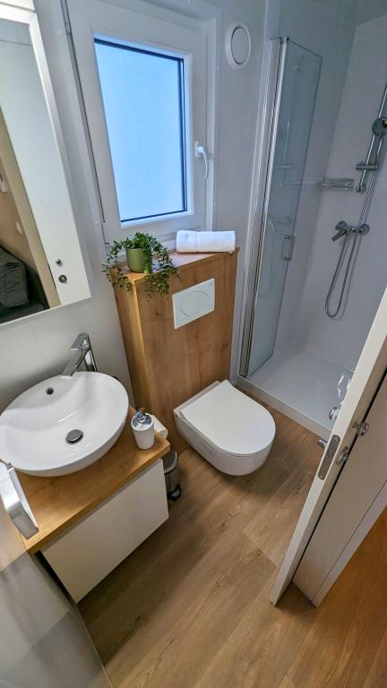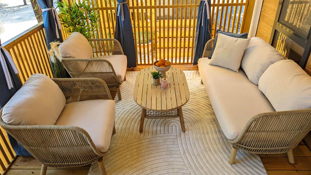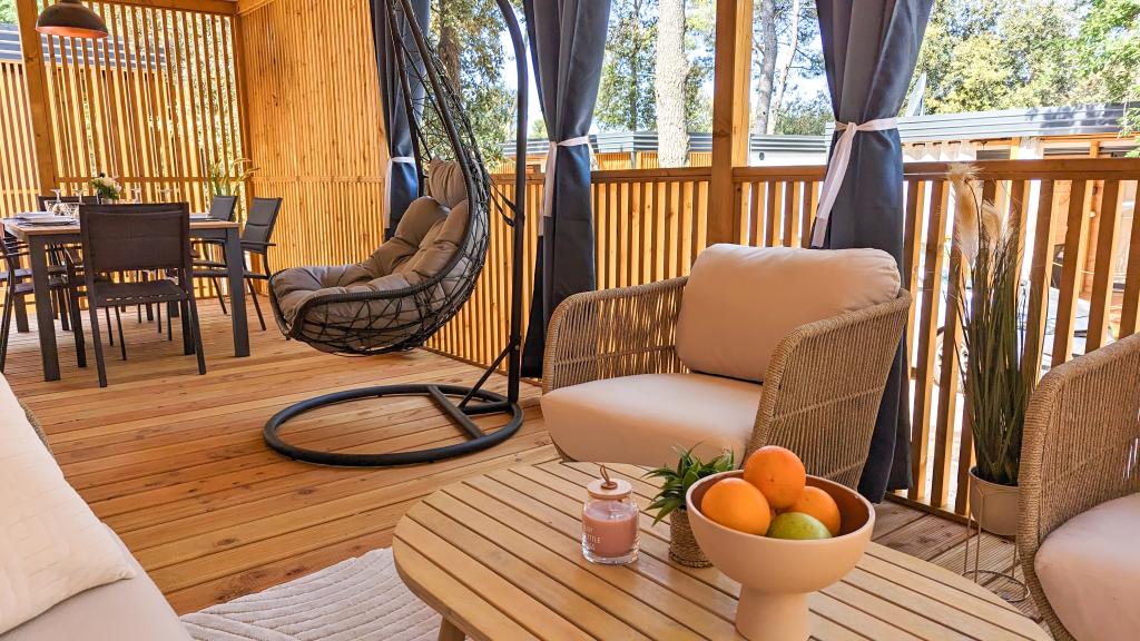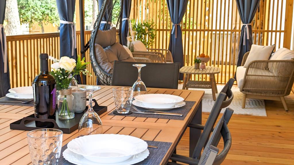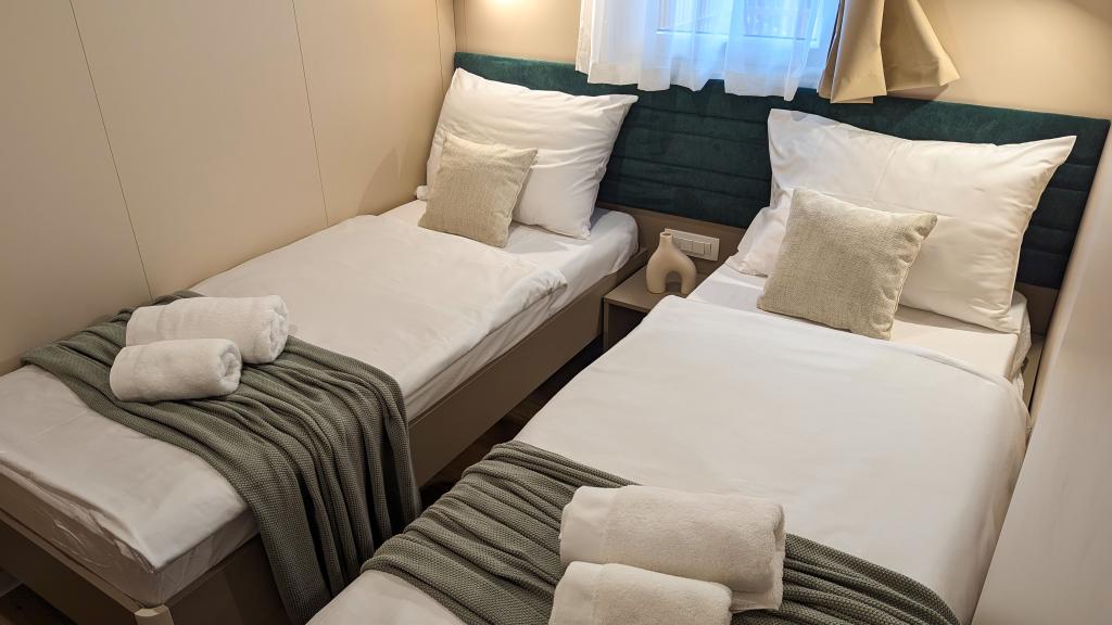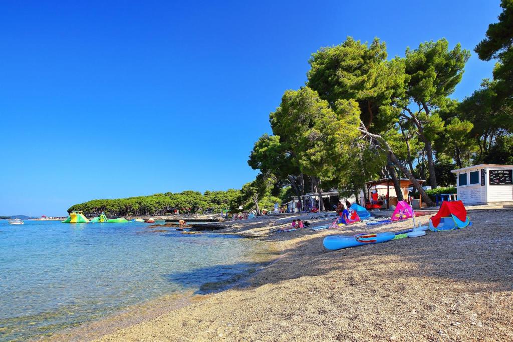 Uživajte v naravi in udobju: mobilne hišice Jaki v kampu Soline, Biograd na Moru. Naše moderno opremljene mobilne hišice, ki se nahajajo v mirnem delu kampa s 4 zvezdicami, obdane z borovim gozdom, so idealne za do 6 oseb. Uživajte v bližini plaže (2-5 minut hoje), trgovin in restavracij ter promenade, ki vodi do centra mesta (15 minut). Te hišice nudijo 2 spalnici in 2 kopalnici, dnevno sobo, veliko teraso z jedilno mizo in bivalnim prostorom ter popolnoma opremljeno kuhinjo - pomivalni stroj, mikrovalovna pečica, aparat za kavo, opekač kruha, mešalnik, zunanji žar. Hiša vključuje tudi brezplačen WiFi, brezplačno parkirišče tik ob hiši, Smart TV, klimatsko napravo, brisače in posteljnino. Kamp ponuja številne vsebine za vso družino: čudovite peščene in prodnate plaže, ki segajo vse do centra mesta, restavracijo z mediteranskimi specialitetami, otroško igrišče, športne aktivnosti in najem koles. Dalmaland, največji tematski vodni park na Hrvaškem, je oddaljen 15 min vožnje.
