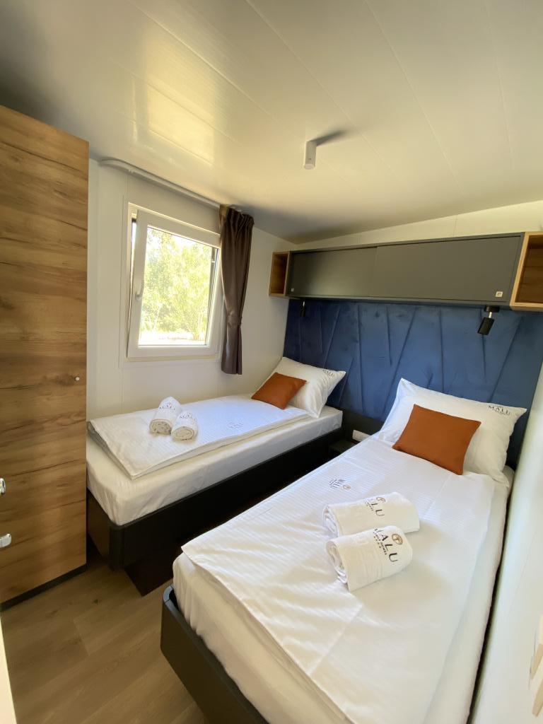 Mobilna hišica MaLu se nahaja v znamenitem kampu Soline v Biogradu na Moru, enem najlepših kampov na Jadranu, ki se nahaja v naravni senci gostega borovega gozda tik ob morski obali. Mobilna hišica je oddaljena približno 350 metrov od čudovite plaže Soline, ki je kombinacija peska in drobnega gramoza ter je zaradi naravne sence in postopnega vstopa v morje idealna za družine z otroki. Kamp Soline ponuja številne vsebine, kot so restavracije, kavarne, pekarna, trgovina, otroška igrišča in športni objekti, ob morju pa je urejena promenada, ki povezuje kamp s središčem Biograda na Moru, do katerega je mogoče priti v približno 15 minutah lahke hoje. Mobilna hišica MaLu se nahaja na mirni lokaciji in je idealna za sproščujoče družinske počitnice. Je moderno opremljena in popolnoma opremljena za prijetno bivanje. Velika pokrita terasa omogoča bivanje na prostem čez cel dan in nudi prijeten prostor za prehranjevanje in sprostitev. Mobilna hišica lahko sprejme do 6 oseb in je odlična za družine ali pare, ki