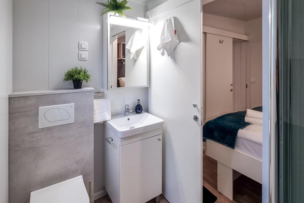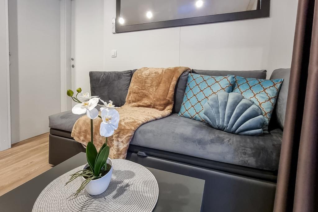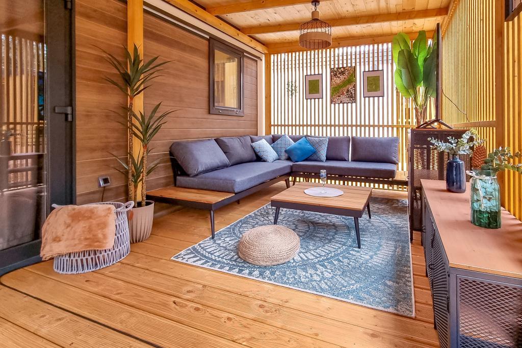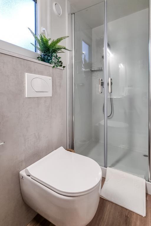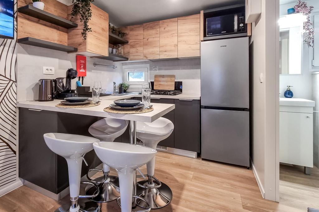 Naša moderno opremljena mobilna hišica ponuja udobno namestitev za do 6 oseb, z 2 prostornima spalnicama, dnevno sobo z raztegljivim kavčem in 2 kopalnicama. Uživajte na veliki pokriti terasi z jedilnico in zunanjo dnevno sobo, idealno za dolga večerna druženja. Tukaj lahko uživate v pikadu ali se sprostite pred velikim televizorjem, medtem ko pečete na našem velikem plinskem žaru in zunanjem štedilniku. Pokrito teraso obdajajo borovci in lahek morski vetrič. Na eni strani terase je prostorna jedilnica z udobnim kavčem in še bolj udobnimi naslanjači, na drugi strani pa naša zunanja dnevna soba ponuja udoben prostor za sedenje, kjer se lahko ne le sprostite, ampak tudi uživate v svojih najljubših televizijskih oddajah na ogromnem televizorju z razpoložljivimi satelitskimi televizijskimi kanali, Netflixom in HBO GO. Hiša se nahaja 3 minute od čudovite plaže.