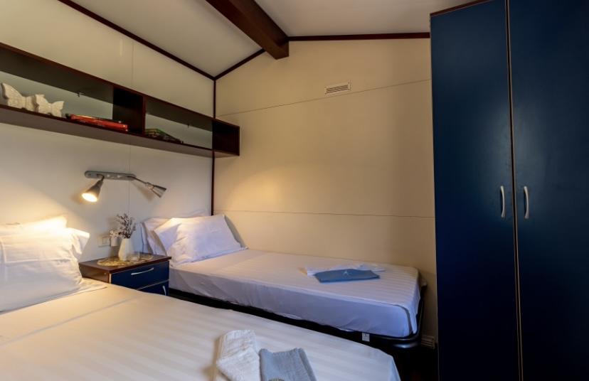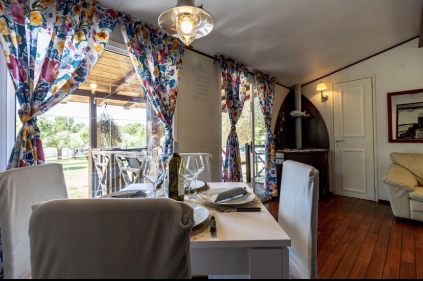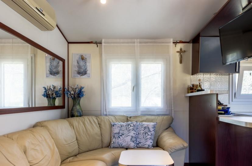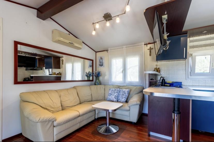 Mobilna hiška se nahaja v sklopu kampa Bakija, 40 m od morja, z lahkim dostopom do plaže Nedaleč od plaže Soline, 2-3 minute hoje do tržnice Studenac 7-8 minut. peš do centra.Popolnoma opremljena z vrtom, kuhinjo, udobno dnevno sobo. Lasten zunanji žar v hiški in svoj zunanji tuš. Objekt je za 4 osebe, 2 sobi, 2 kopalnici od tega je ena kopalnica z masažno kadjo. Prostorna terasa, kot nalašč za prijetno bivanje s pogledom na morje in čudovite sončne zahode.