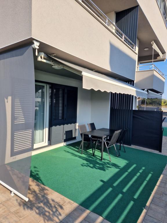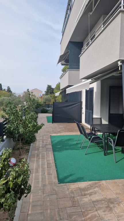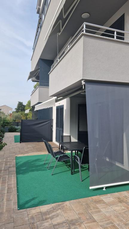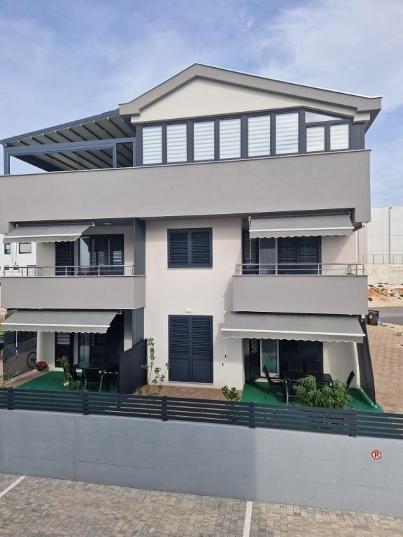 Villa Toni je novozgrajen objekt. Apartmaji so zelo lepo urejeni, moderni in zračni. Vsak apartma ima popolnoma opremljeno kuhinjo. V vsaki dnevni sobi je raztegljiv kavč. Sobe so opremljene z velikimi zakonskimi posteljami ter kvalitetnimi in udobnimi vzmetnicami. Vsi apartmaji so klimatizirani in imajo pralne stroje. Na terasah in balkonih so tende (sprednje in stranske). Vila se nahaja v mirnem delu mesta. Na dvorišču je zagotovljeno parkirno mesto. V bližini je več supermarketov, plaž, restavracij in kavarn. Do centra je 10 minut hoje, do plaže pa 5 minut.