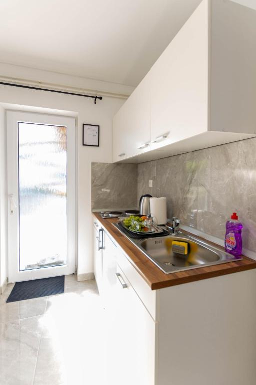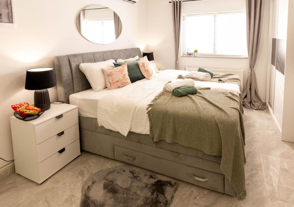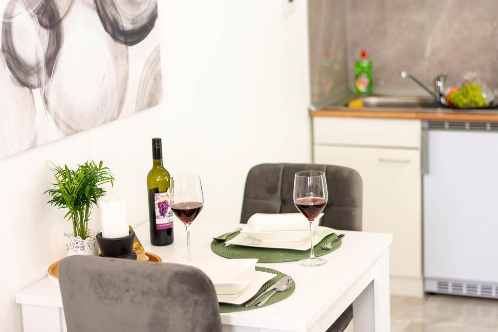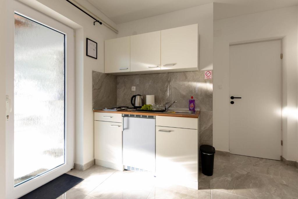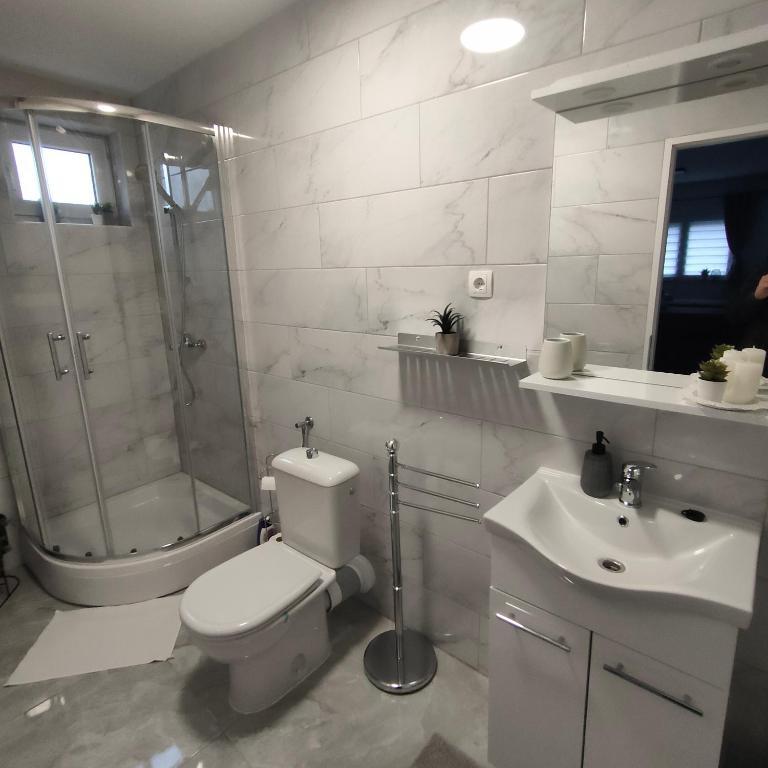 Hiša je sestavljena iz dveh studio apartmajev. Vsak Studio apartma vsebuje 1 spalnico s popolnoma opremljeno kuhinjo, 1 kopalnico, posteljnino, brisače, mila, geli za tuširanje, šampone, TV z ravnim zaslonom, skupno teraso za uživanje v kavi z velikim vrtom. Stanovanje se nahaja v mirni ulici cca 500 m od centra mesta in je umaknjeno v parcelo. Dvorišče in velik vrt ločita stanovanje od ceste, kar omogoča mirno bivanje v apartmaju in na terasi. Na dvorišču je parkirišče za osebne avtomobile.
