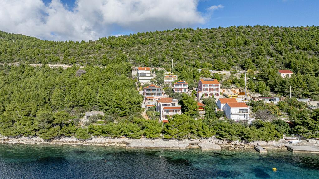 ️APARTMAJI GORA️️ se nahajajo v Karbuni na otoku Korčula. Od Vele Luke so oddaljeni približno 14 minut vožnje z avtomobilom, od tam pa približno 12 minut. Iz mesta Blato. Nahajajo se v drugi vrsti od morja na lokaciji, ki ponuja mir in tišino, čudovit razgled s prostornih teras na sosednje otoke in morje, vse, kar potrebujete, da se počutite sproščeno in udobno ter s seboj odnesete najlepše spomine. Ponujamo 5 apartmajev, velikosti približno 55 m2 s terasami velikosti približno 15-17 m2; 4APP. 4+1 1APP 6 V zadnjem delu hiše imate možnost uporabe žara (v dogovoru z drugimi gosti). Za vse ostale podrobnosti in informacije smo vam na voljo Z velikim veseljem vas bomo gostili in postali del vaših lepih spominov️
