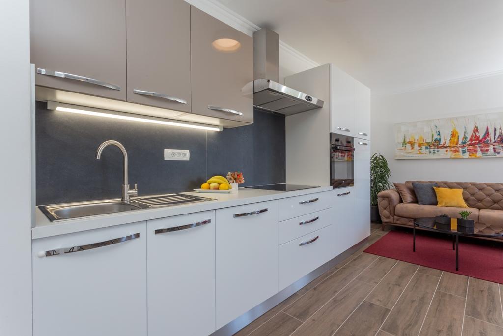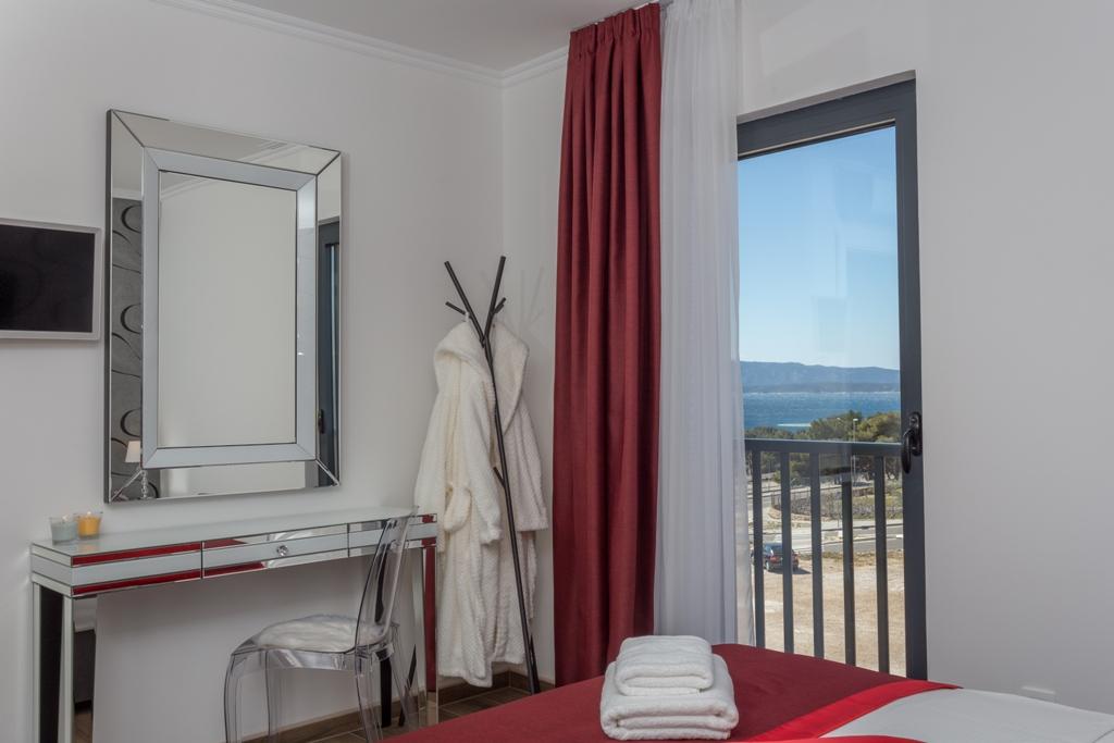 Apartma Pleasure Bol je odlična kombinacija lokacije, udobja in povezljivosti. Izbrali ste najboljše, saj ob vstopu v mesto Bol vstopite v svojo garažo v pritličju apartmaja in tam se končajo vse skrbi glede varnosti vašega avtomobila, ki ga za bivanje v Bolu ne potrebujete več. Vstop v stanovanje vam bo narisal širok nasmeh na obraz, saj vas poleg oblikovalskih detajlov pogled privlači na velike steklene stene, ki razkrivajo plažo Zlatni rat, odprto morje in čudovit sončni zahod tik pred vami. Ko greste ven na teraso, vse to dopolni neoviran pogled na najvišji vrh otoka Brača - Vidovo Goro (778 m).