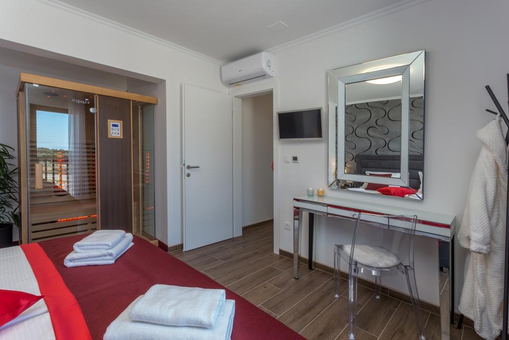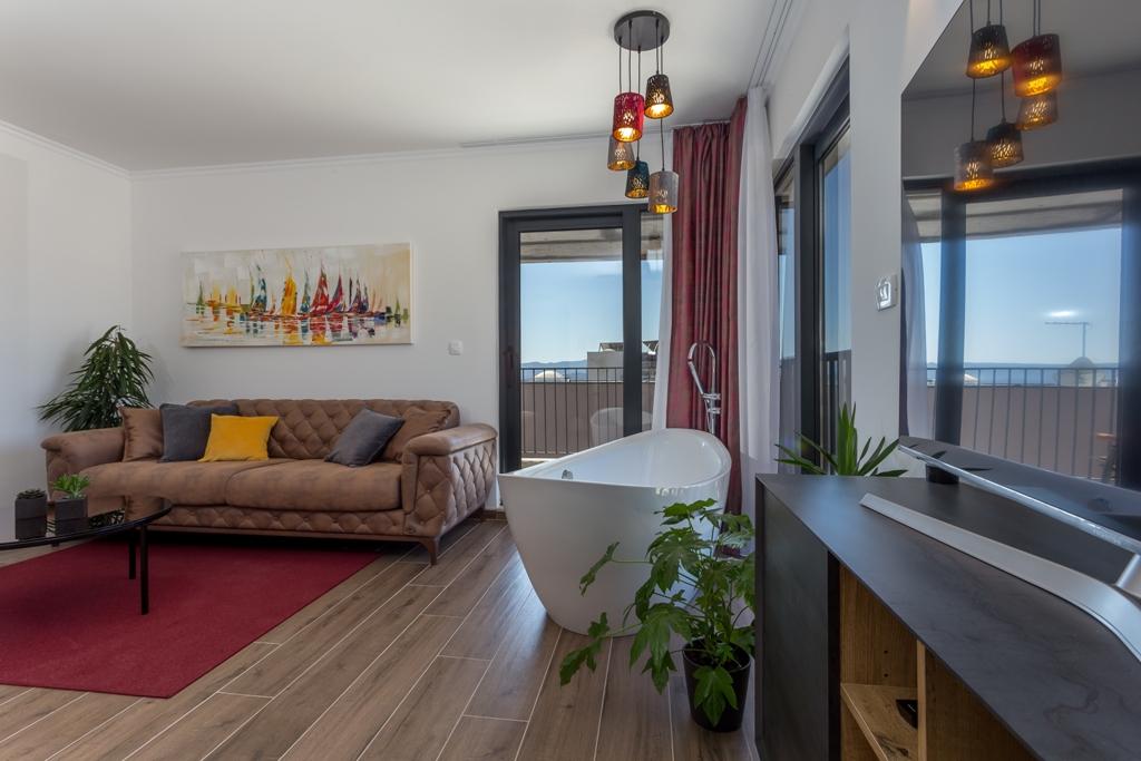 Turistična taksa je vključena v ceno. Dokument o potrditvi rezervacije ob rezervacijiApartma Pleasure je zasnovan za uživanje v dvoje, ne le poleti, ampak vse leto, saj smo si vas zamislili v masažni kadi sredi dnevne sobe, ki ponuja čudovit in pomirjujoč razgled. In talno ogrevanje, savna, vrhunska zakonska postelja velikosti 200x200 cm, tuš kabina s kopalnimi plašči, dva pametna televizorja, Netflix, sef, brisače za na plažo, popolnoma opremljena kuhinja z aparatom za kavo Dolce Gusto in možnostjo izbire vrhunskega zajtrka ... Vse je podrejeno vam in vaše je, da UŽIVATE!