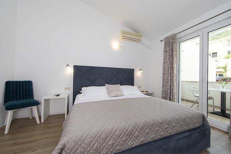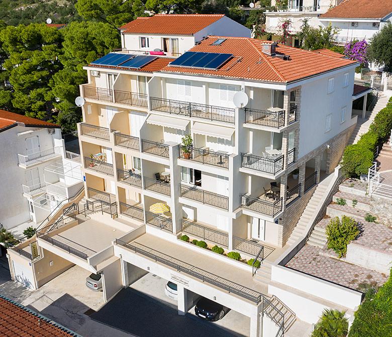 Skriti apartmaji od glavne ceste se nahajajo v mirni ulici, vendar blizu centra Brela. Le 200 m nas loči od plaže in središča mesta, v neposredni bližini pa so vsi pomembni objekti, hoteli, restavracije, trgovine, teniška igrišča, vse, kar bo vaše bivanje prijetnejše in nepozabnejše. Naši apartmaji v Brelih ponujajo čudovit pogled na morje in bližnje otoke. Ponujamo vam 7 apartmajev, parkirišče pa je zagotovljeno za vaše avtomobile. Apartmaji imajo: spalnica, dnevna soba, kuhinja, kopalnica s tušem ali kadjo, WI FI, klima, satelitska TV, balkon in parkirni prostor.