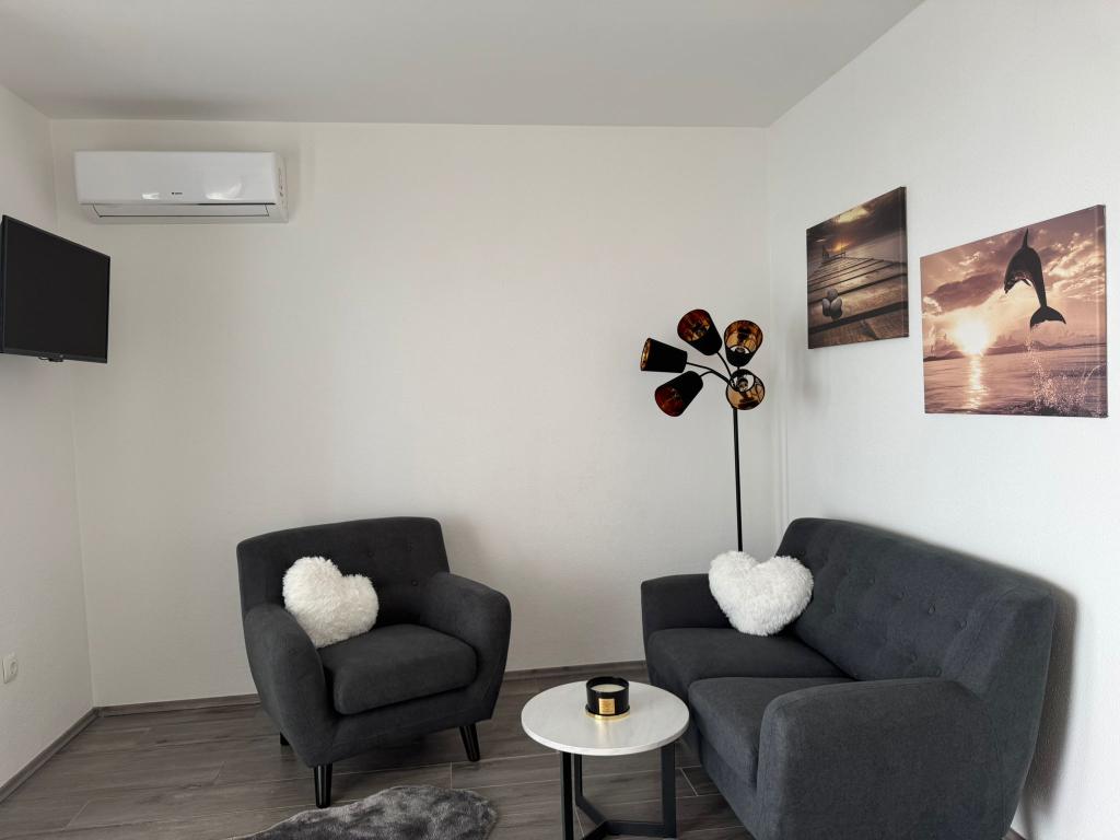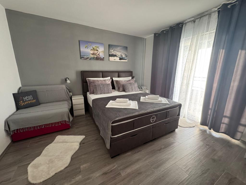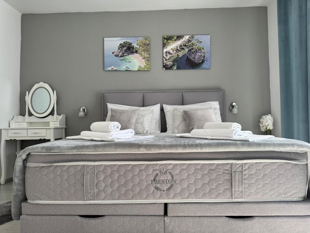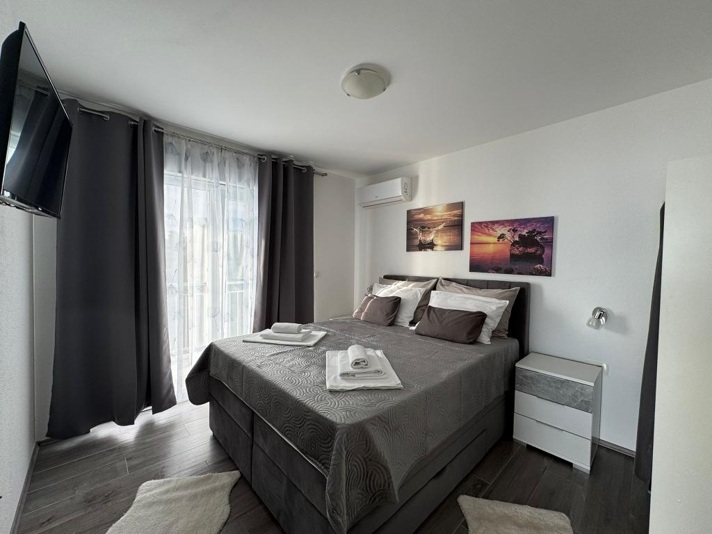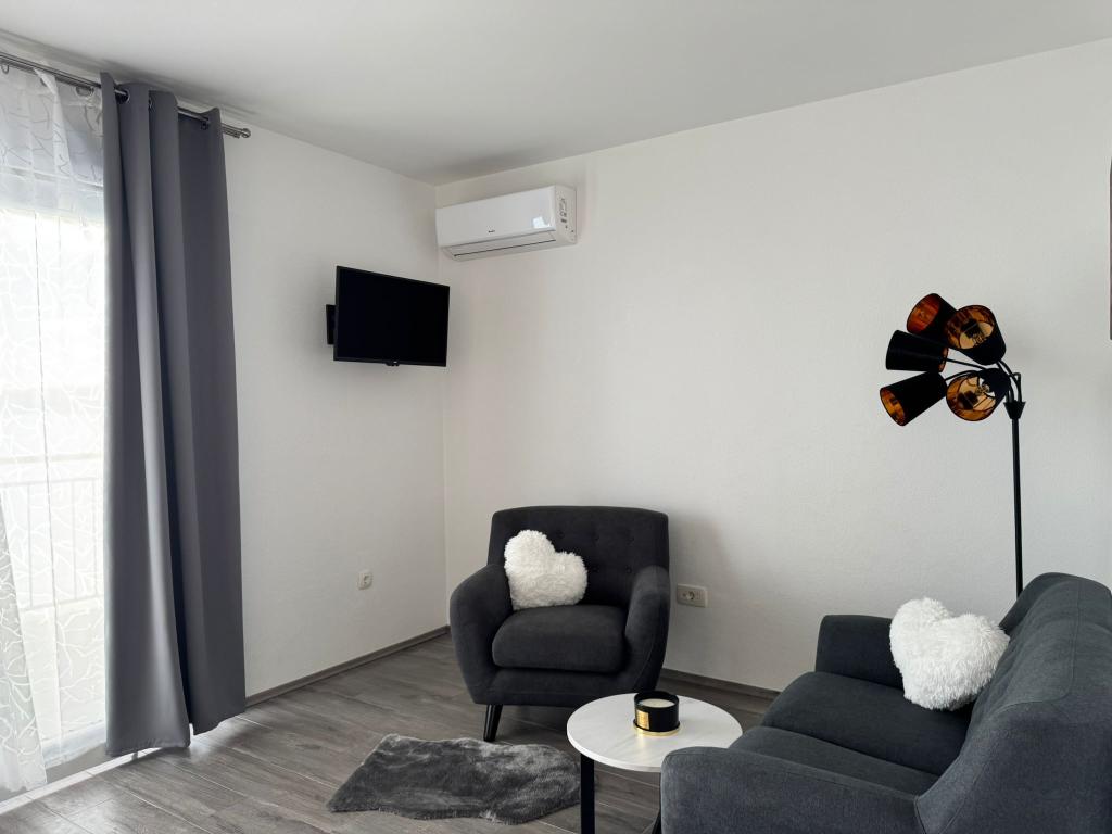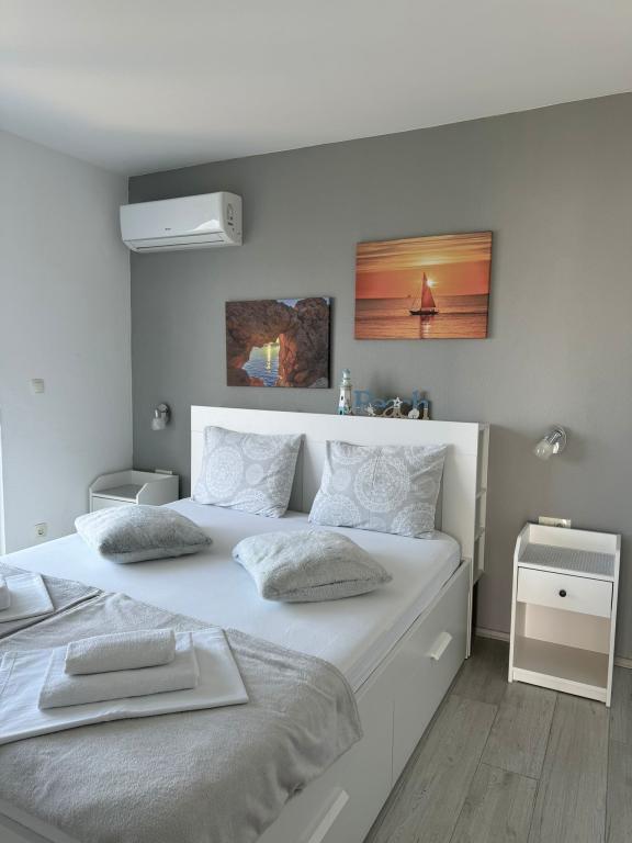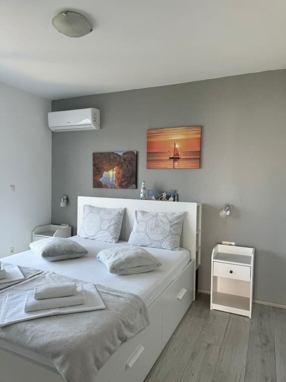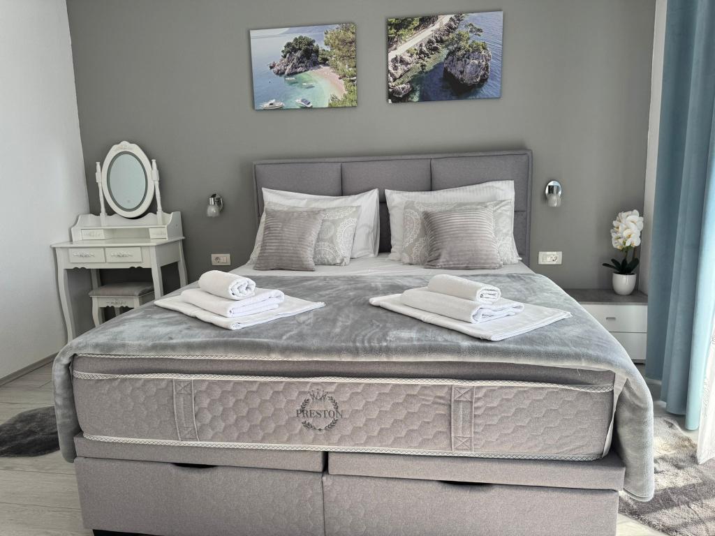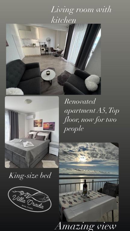 VILLA ORADA obdan z borovim gozdom s pogledom na morje in dalmatinske otoke, ki se nahajajo v mirnem zalivu Podcrkavlje v Donja Brela. 150 metrov stran so lepe plaže, kjer lahko vsakdo najde nekaj zase iz restavracije, kavarne, cocktail bari, spominkov in predmetov, za na plažo do vodnih športov. Apartma se nahaja le 10 minut hoje do mini trgov in potovalne agencije, ki v zameno ponuja pustolovski rafting na reki Cetini, v bližini mesta, pohodništvo na pobočju gore in izlete z ladjo do bližnjih dalmatinskih otokov. Brela je edinstven po svojih kristalno modro morje, lepe plaže in zalivi, in so prav tako kot idealen kraj za vaše počitnice in prijazni gostitelji bodo poskrbeli, da se počutim udobno in zadovoljni. Dobrodošli!