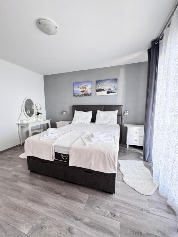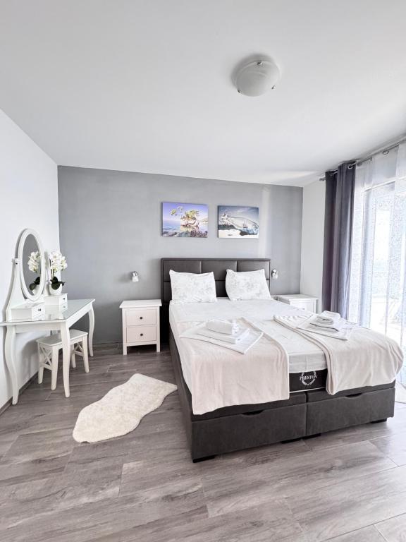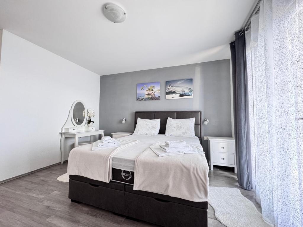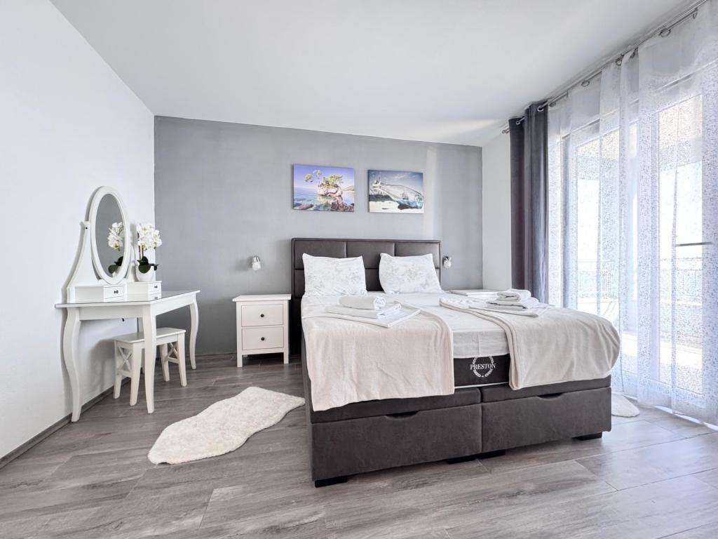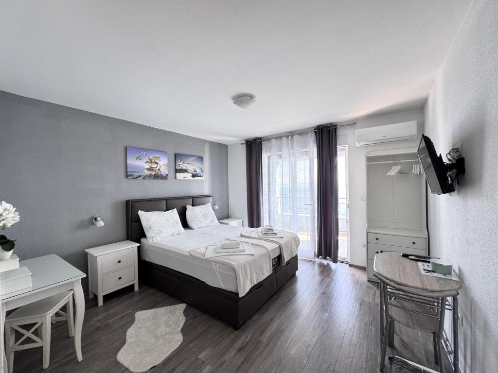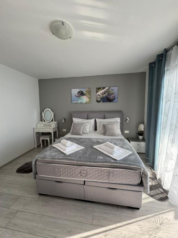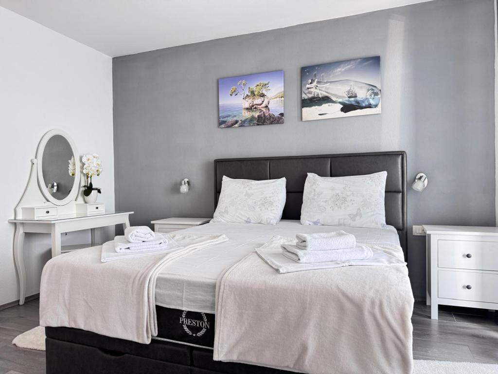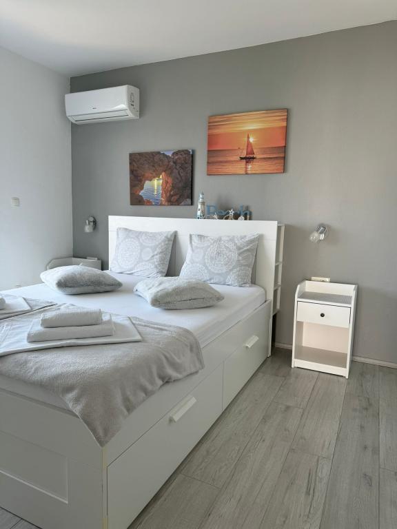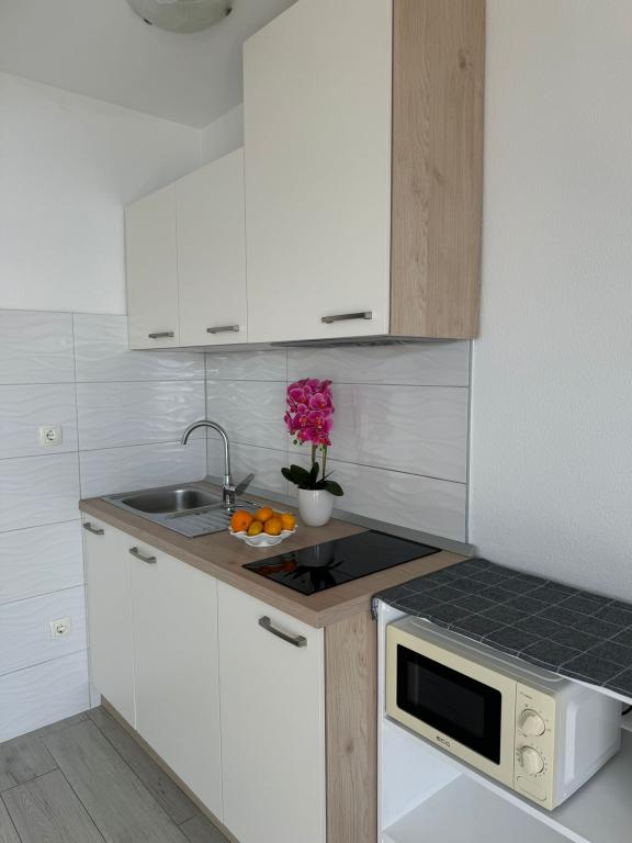 VILLA ORADA obdan z borovim gozdom s pogledom na morje in dalmatinske otoke, ki se nahajajo v mirnem zalivu Podcrkavlje v Donja Brela. 150 metrov stran so lepe plaže, kjer lahko vsakdo najde nekaj zase iz restavracije, kavarne, cocktail bari, spominkov in predmetov, za na plažo do vodnih športov. Apartma se nahaja le 10 minut hoje do mini trgov in potovalne agencije, ki v zameno ponuja pustolovski rafting na reki Cetini, v bližini mesta, pohodništvo na pobočju gore in izlete z ladjo do bližnjih dalmatinskih otokov. Brela je edinstven po svojih kristalno modro morje, lepe plaže in zalivi, in so prav tako kot idealen kraj za vaše počitnice in prijazni gostitelji bodo poskrbeli, da se počutim udobno in zadovoljni. Dobrodošli!