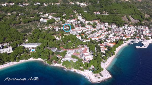 Brela, biser Makarske riviere, v mirnem okolju mediteranskega rastlinja, Anri apartmaji vas čakajo. Apartmaji in sobe so urejeni njegove meri sodobne zahteve za prebivanje in standarde za prijeten dopust, in iz balkona ali terase ponuja čudovit pogled na morje in otoke. Parkirišče v senci pred hišo je brezplačno za naše goste. Kristalno čisto morje in dolge peščene plaže, obdane z borovim gozdom se nahaja le 200 m Da bo vaš dopust aktivno, za ljubitelje športa, v bližini, obstaja več možnosti, kot so: teniška igrišča, mini golf, vodni športi, pohodništvo, rafting . Doživite nepozabne počitnice v apartmajih Anri! Veselimo se srečanja z vami!