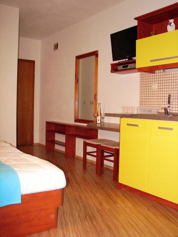 Nahaja se na mirni lokaciji, le 10 metrov od morja so apartmaji Bikin. Vsi apartmaji ponujajo imajo vse, kar potrebujete za udobno bivanje: popolnoma opremljeno kuhinjo, SAT TV, sef, brezplačno klimatsko napravo, brezplačen Wi-Fi internet. Zajtrk je na voljo samo v sobi. Vrt z žarom je na voljo. Parkiranje je brezplačno v bližini. Najbližji supermarket je 100 metrov, restavracija s kuhinjo mediteranskm 400m. Pralni stroj in likalnik so na voljo za doplačilo.