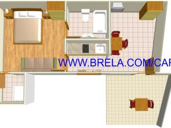 Objekt se nahaja v centru Brela, oddaljen od plaže, restavracije, kavarne, trgovine, itd ... 200 m,