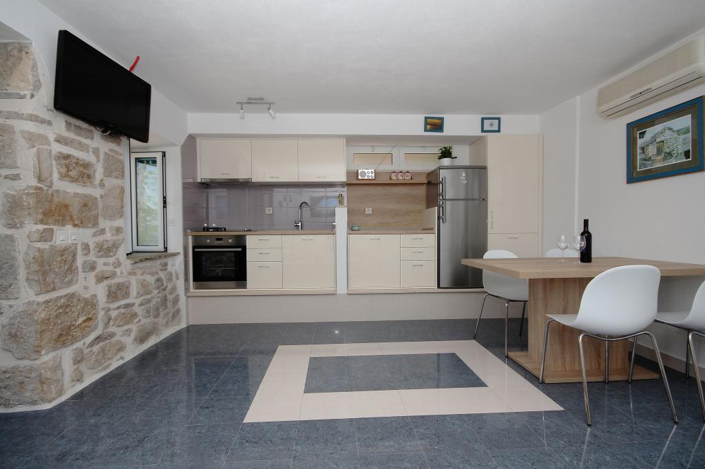 Apartmaji Sine I Ante so popolnoma opremljeni leta 2014, ko odprejo svoja vrata za goste. Nahajajo se v mirnem delu Brela, 200m od morja z varovanim parkiriščem tik ob morju, če ga gost želi. V ceno so vključeni klimatska naprava, wi-fi, taksoni in parkirišče. Apartma Dalmacija je bil popolnoma prenovljen leta 2019, gostje pa sta lahko nastanjena v dveh odraslih in dva otroka in imata prostorno teraso z žarom z jacuzzijem. Sprostite se na udobnih ležalnikih in uživajte v oazi miru in zelenja s svojo družino. Veselimo se vašega prihoda.