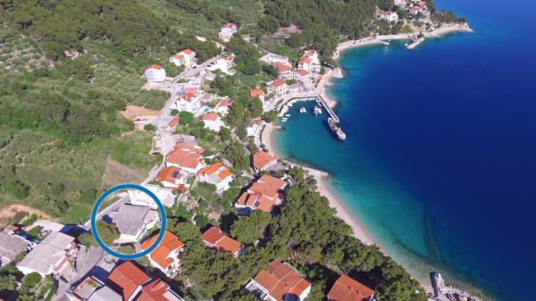 Apartmaji Hrvoje se nahajajo na visokem položaju v mirnem delu Stomarice ulice. Oddaljenost od prodnate plaže je približno 3 min. sprehod ali 150 m. Na eni strani hiše je pogled na morje, drugi pa pogled na planino Biokovo. Ponudba družine Jelčić je kakovostna, gostje pa se lahko popolnoma sprostijo v apartmajih in preživijo nepozabne počitnice. Apartmaji izpolnjujejo vse goste, ki želijo preživeti prijeten dopust. Ponudba nastanitve vključuje apartmaje s kuhinjo, spalnico, klimatsko napravo, satelitsko televizijo, kopalnico in balkone. Za hišo se nahaja vrtna terasa z mizami, kjer se lahko sprostite ob mirnem vzdušju s pogledom na morje. Na voljo je tudi zunanji žar, vendar prijazna dama. Jelčič bo z veseljem pomagal. Parkiranje je zavarovano.