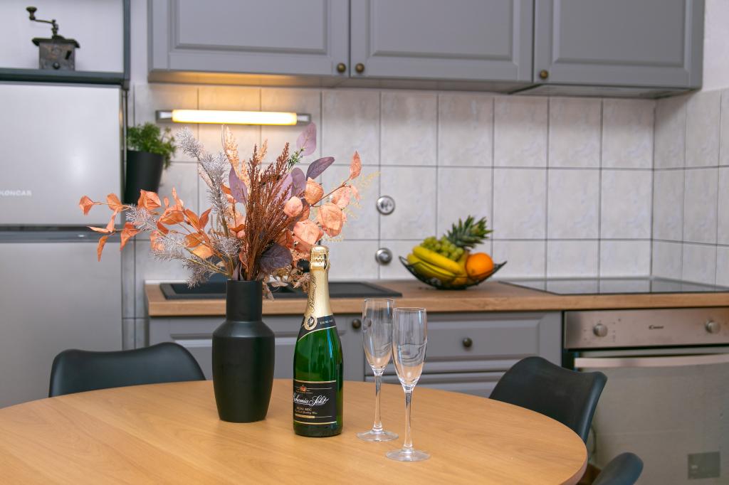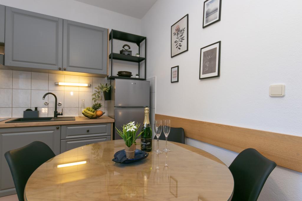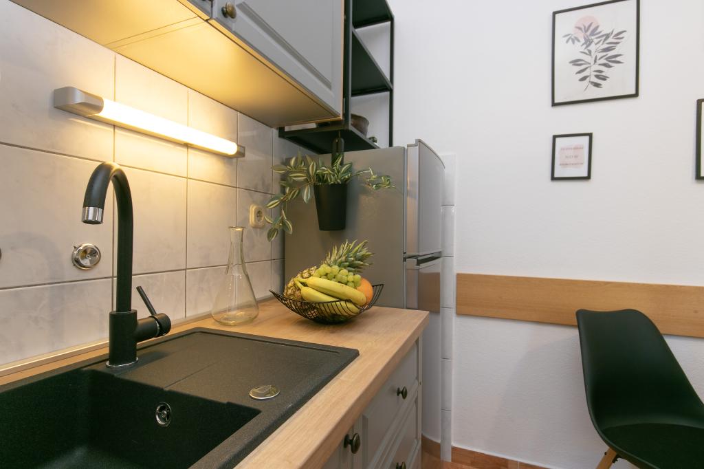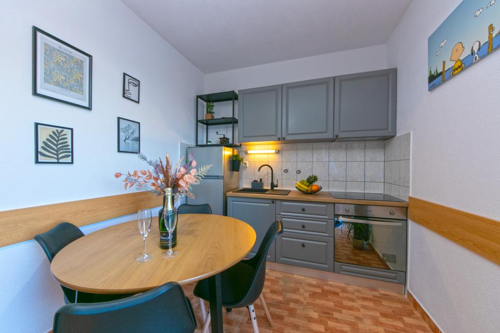 Res mi je všeč ostalo v stanovanju. Vse je prikladno, ustvarjeno za dober dopust, obstaja vse, kar potrebujete, v treh minutah hoje je trgovina, kjer lahko kupite vse, kar potrebujete. V 3-4 minut vožnje z avtom je velika trgovina s svežim mesom in ribami. Zelo lepa plaža je 5 minut hoje po toboganih. Prvega dne počitka je bila 65-letna mati težko vstati s plaže, a malo kasneje vzpon ni bil tako naporen za njo. Mnogi so morali plezati še višje. Do središča približno 30 minut peš na najlepši rivi. Zelo dobri gostitelji. Odlična kombinacija cene / kakovosti.