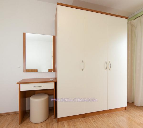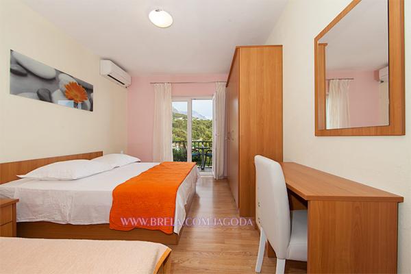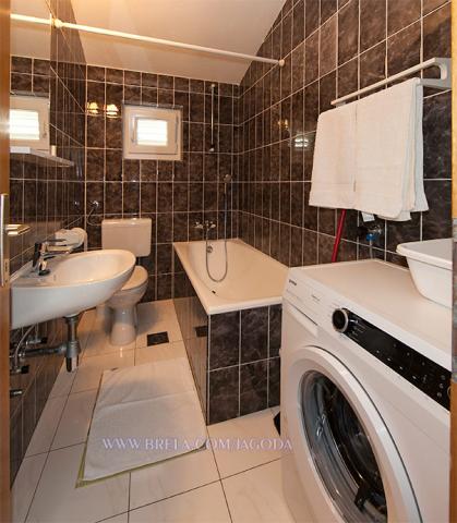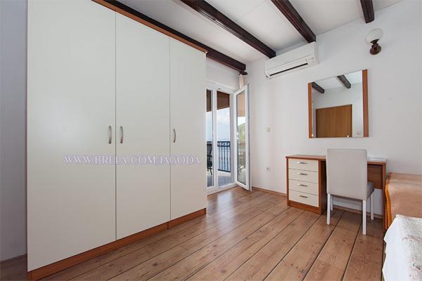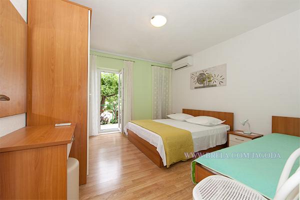 Apartmaji Jagoda Klarić se nahaja v mirnem delu Brela (Stomarica) kilometer in pol od centra mesta. Na eni strani je pogled na morje, drugi ima pogled na gorskem pobočju. Najbližji supermarket je približno 300 m, in oddaljenost od plaže, kar je približno 2 minuti hoje (80 m). Namestitev vključuje: Apartma 1: 60m² 20m² bakon / terasa, 1 triposteljna soba z balkonom (v pritličju), 1 triposteljna soba z balkonom (v 1. nadstropju), 2 kopalnici z WC, popolnoma opremljeno kuhinjo z jedilnico, veliko teraso s pogledom na morje. Največja zmogljivost za 6 oseb. Apartma 2 / (Na 2 nadstropje): 65m² 15m², balkon / terasa, 1 dvoposteljna soba z balkonom, 2 kopalnici z WC, ena triposteljna soba z balkonom, popolnoma opremljeno kuhinjo, jedilnico / dnevno sobo s kavčem in balkon, vsi balkoni so s pogledom na morje. Največja zmogljivost za 6 oseb.