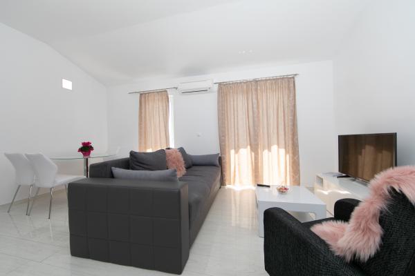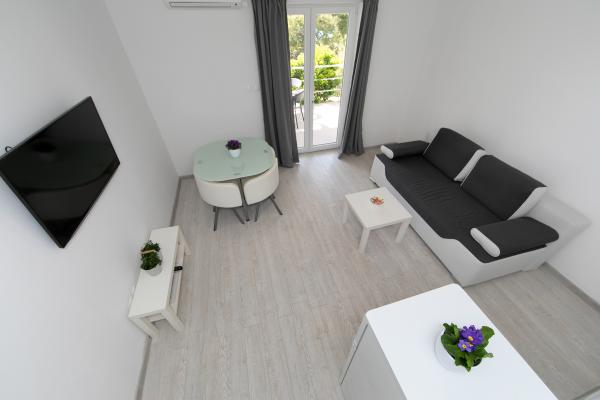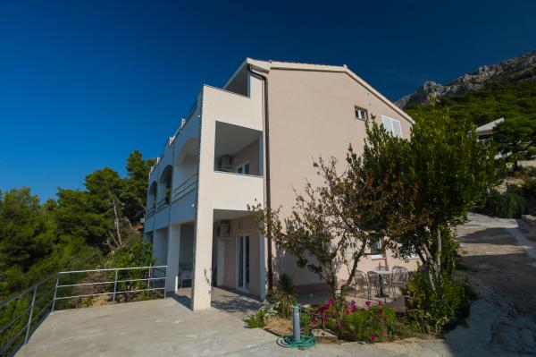 Prostorni in udobni apartmaji se nahajajo v mirnem predmestju Brela-Jakirusa Vsak apartma ima svoj vhod in balkon s pogledom na morje. Popolnoma opremljeno kuhinjo.