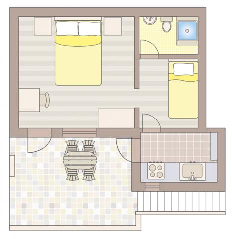 Namestitvene enoteNamestitev v apartmajih je rezervirana za točno določeno število oseb. Plačilo se izvede v gotovini. Rezervacija je potrjena po plačilu akontacije 30% celotne cene. Turistična taksa, parkirišče, končno čiščenje vključeni v ceno. WiFi internet, satelitska TV, klima in čista posteljnina so vključeni v ceno. Čas prihoda v apartma od 14.00 ure, čas odhoda iz apartmaja do 9.00 ure zjutraj.