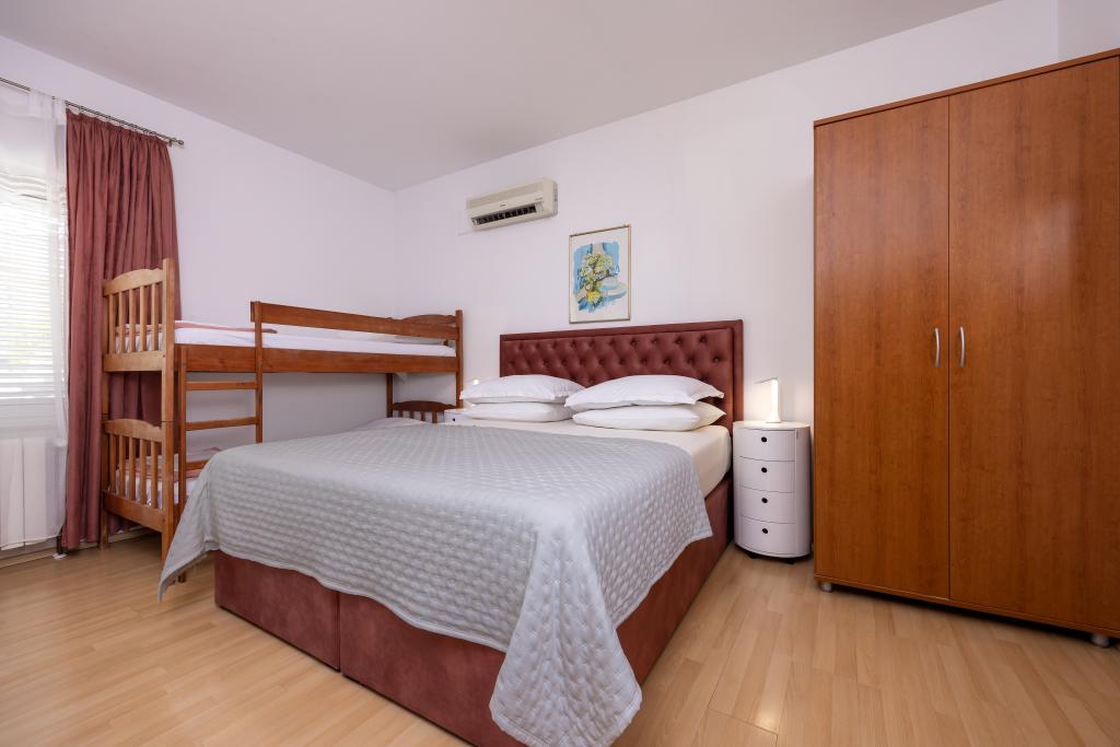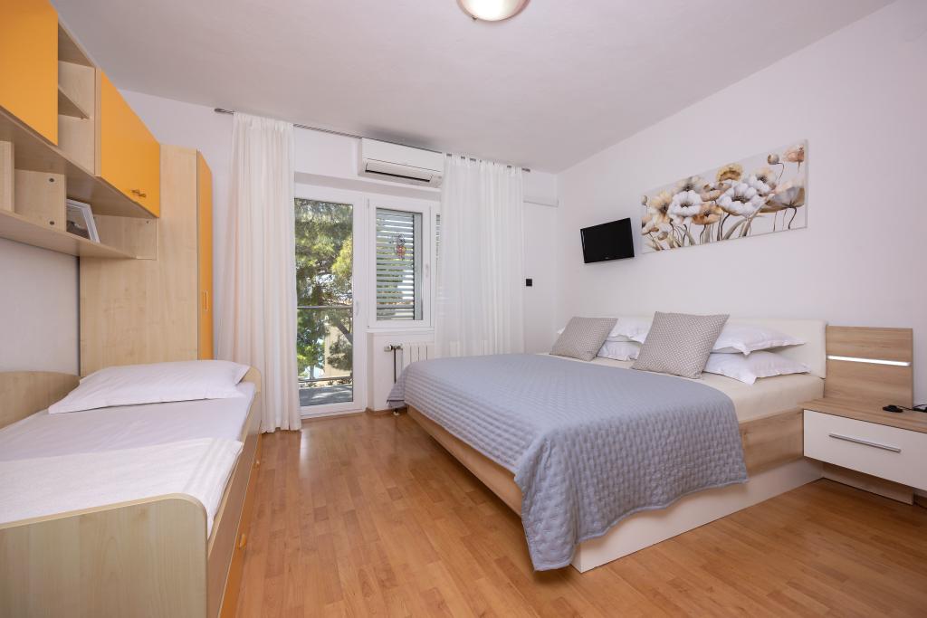 Apartmaji Škrabić – Uživajte v miru ob morju Dobrodošli v apartmajih Škrabić, ki se nahajajo le 100 m od morja v mirnem delu Brele. Ponujamo vam štiri udobno opremljene apartmaje s pogledom na morje, vrt ali borov gozd – idealni za družine, pare in prijatelje. Vsi apartmaji imajo Wi-Fi, klimatsko napravo, popolnoma opremljeno kuhinjo, balkon ali teraso, varno parkirišče in prostor za shranjevanje opreme za plažo. Obdani smo z velikim vrtom z žarom in naravno senco. Vedno smo na voljo svojim gostom – poleg toplega sprejema nudimo zasebnost in pristno dalmatinsko vzdušje.