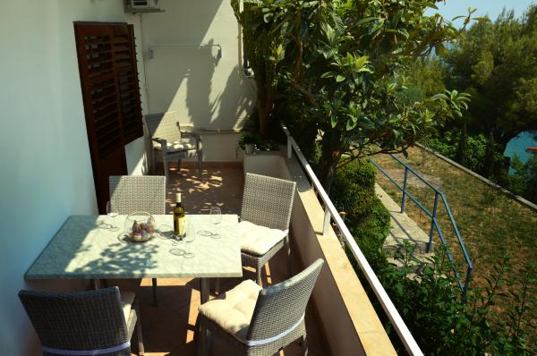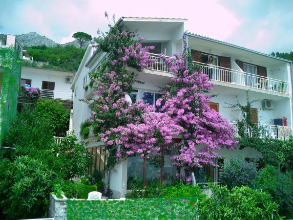 Moderna namestitev s čudovitim pogledom na morje, druga vrsta do morja (cca. 40 m). Apartma A4 1 / v 2. nadstropju / je luksuzno opremljen in namenjen 4 osebam z možnostjo dodatnega ležišča ali otroške posteljice. Sestoji iz kuhinje, dveh spalnic (prehajajo iz ene sobe v drugo), vsaka soba ima svojo kopalnico. Vsaka soba ima LCD, klimo, WIFI. Apartma A4 2 /pritličje/ je apartma velikosti cca 70m2. Je moderen apartma z veliko kuhinjo in jedilnico z LCD-jem, ima dve moderno opremljeni sobi, vsaka s svojo kopalnico, klimo. Sobe imajo skupno veliko teraso-balkon s čudovitim razgledom. V garaži je parkiranih več avtomobilov. Možnost uporabe žara. Tržnica je od stanovanja oddaljena cca 70 m. Plaža se nahaja 30 m od apartmaja. Restavracije La Bomba, Mediteran in Ivandića dvori so oddaljene 100 m. Oddaljenost od Makarske je 10 km. Studio apartma A2 Rustical je apartma namenjen 2 osebama, ki želita posebne in čudovite počitnice ter hkrati doživeti avanturo na tradicionalen dalmatinski način. V starem Etnoselu ŠOŠIĆI, ki se nahaja le cca 300 m od morja