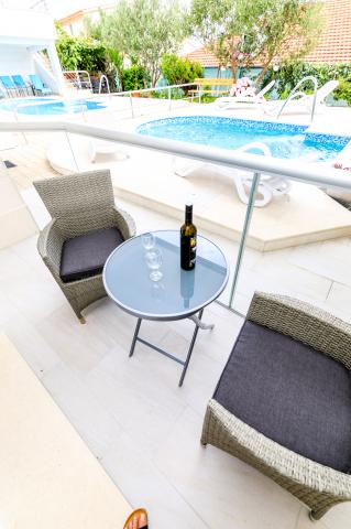 Cena vključuje: wi-fi, parkirišče, bazen, fitnes, skupni pralni stroj, brisače in posteljnina, končno čiščenje, turistična taksa.