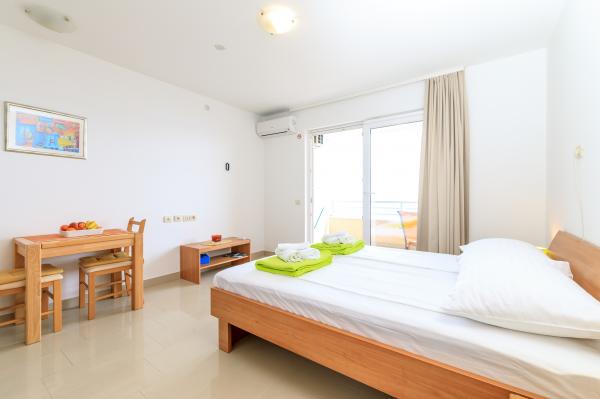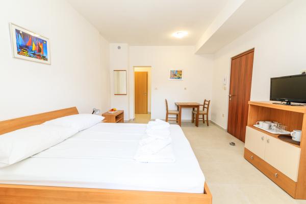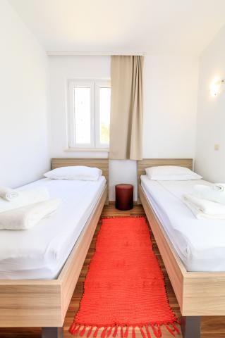Preberite več Namestitvene enoteAkontacija: 30 %. Dodatno ležišče (na osebo): Izven sezone: 10 EUR/noč. Od 1. julija do 31. avgusta: 15 EUR/noč. Za otroke do 7 let: 50% popust na pomožnem ležišču. Čas prihoda: od 14. ure. Čas odhoda: do 10. ure.