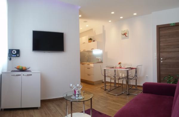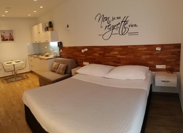 Stanovanje smo bili junija s hčerko. Apartmaji so bili potem samo obnovili. Stanovanje je zelo lepo, čisto, moderno in popolnoma opremljeno. Ni bilo treba zahtevati ničesar. Vse je bilo poskrbljeno, in še več. Apartmaji imajo terase s pogledom na morje. Apartma ima TV, WiFi in varno. Kaj sem rekel, kljub vsem presežnikov za gostoljubnost suite in sustretljivost gostiteljici; nekaj, kar ne boste našli prav to! Zagotovo eden izmed najboljših stanovanje, kjer smo bili! Toplo priporočam!