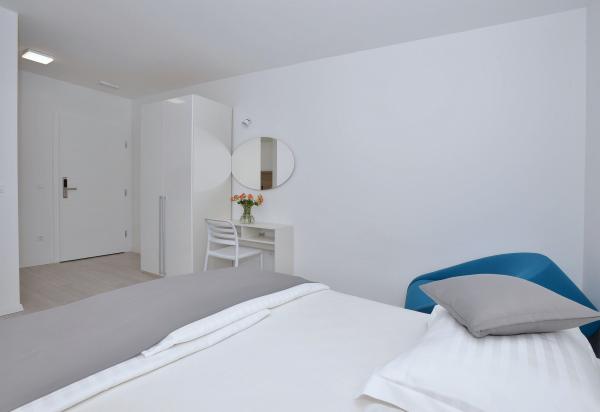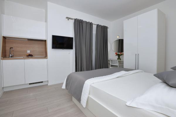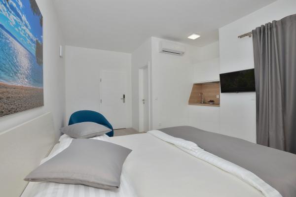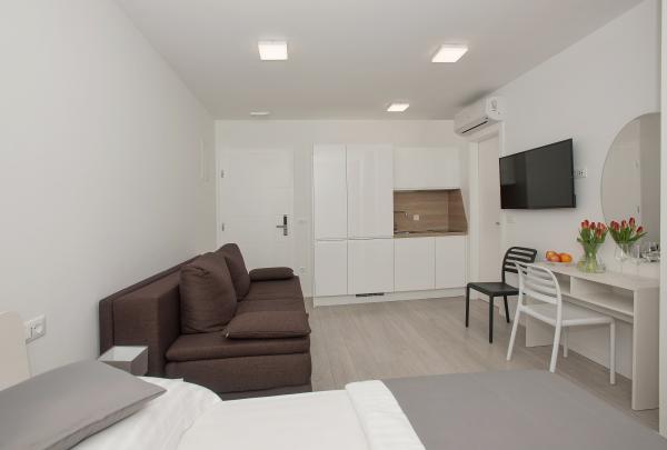 Turistična taksa je vključena v ceno.V tem apartmaju sem ostal z ženo in dvema otrokoma 10 noči. Prostora je bilo dovolj, ima vse kar potrebujemo in zelo smo zadovoljni. Mirno mesto in bližina morja, kar nam je bilo najbolj pomembno. Blizu promenade, ki je lepa, mesto, restavracije. Parkiraš avto in uživaš. Vsako priporočilo.