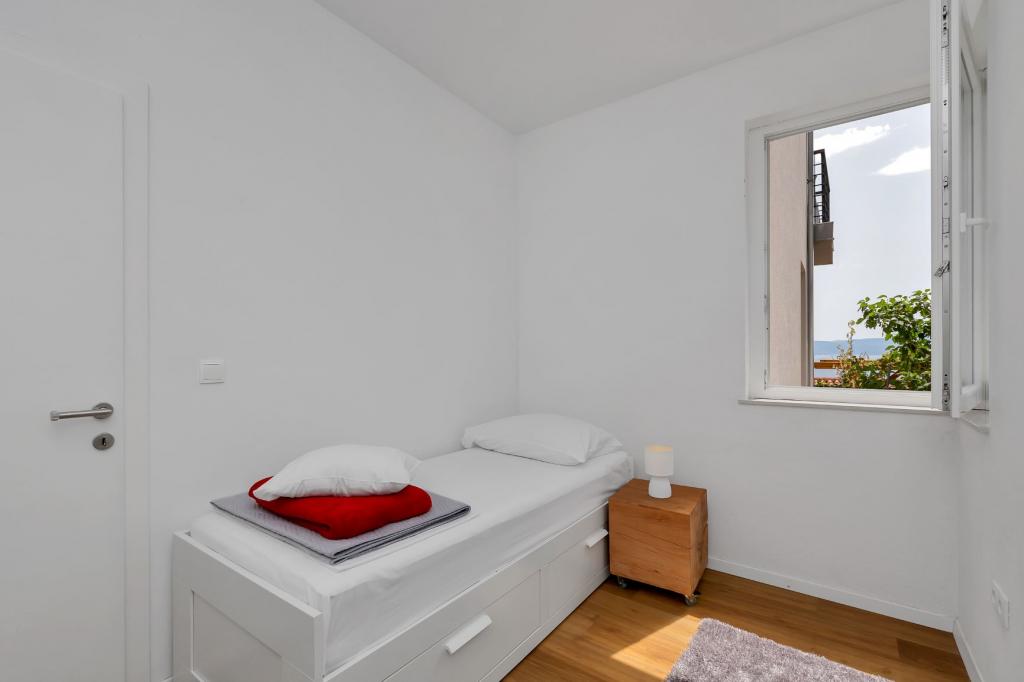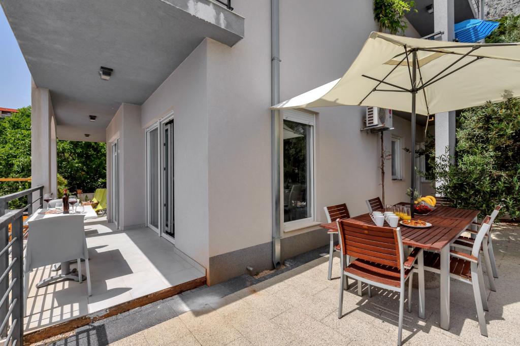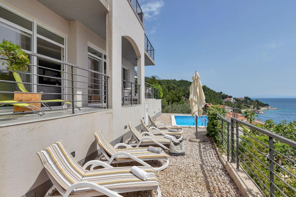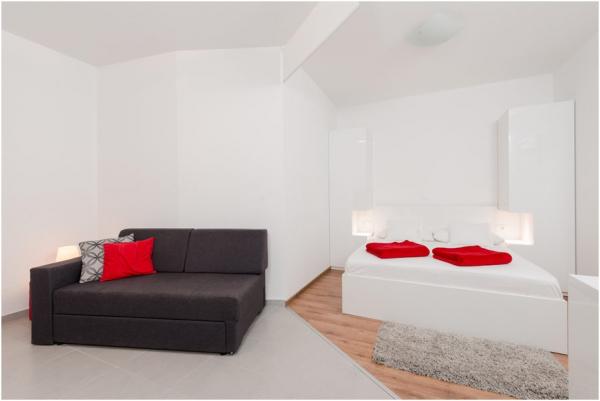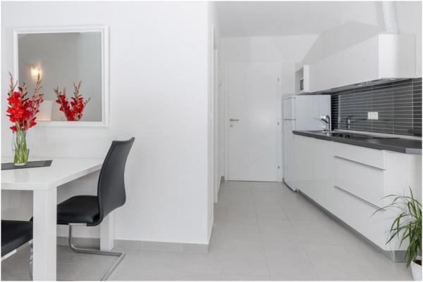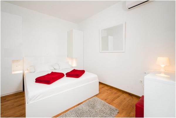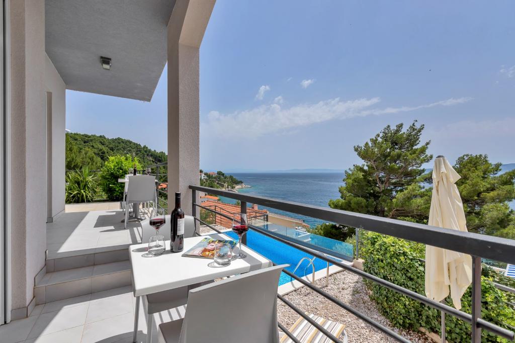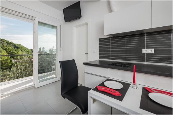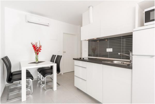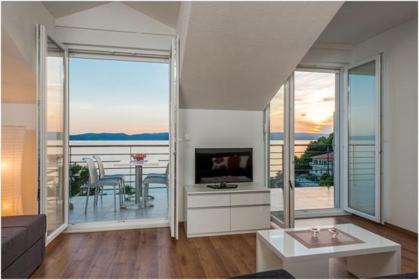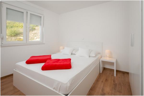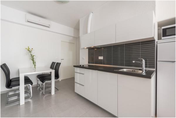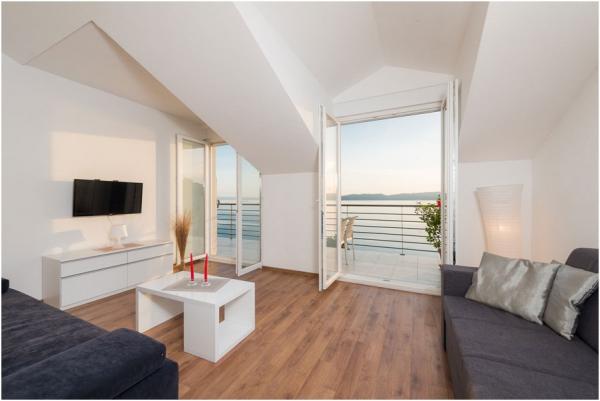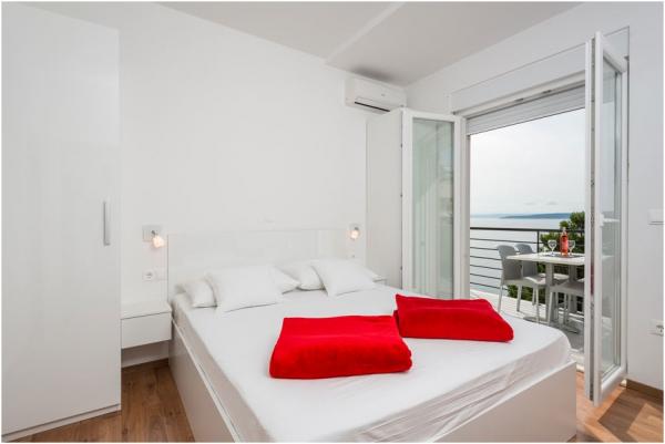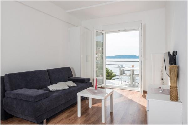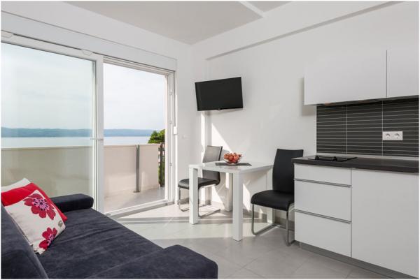 Apartmaji so moderno, klimatizirane, imajo popolnoma opremljeno kuhinjo, kopalnico s tuš kabino, LED satelitsko televizijo, brezžični internet in balkon s pogledom na morje in otoke.