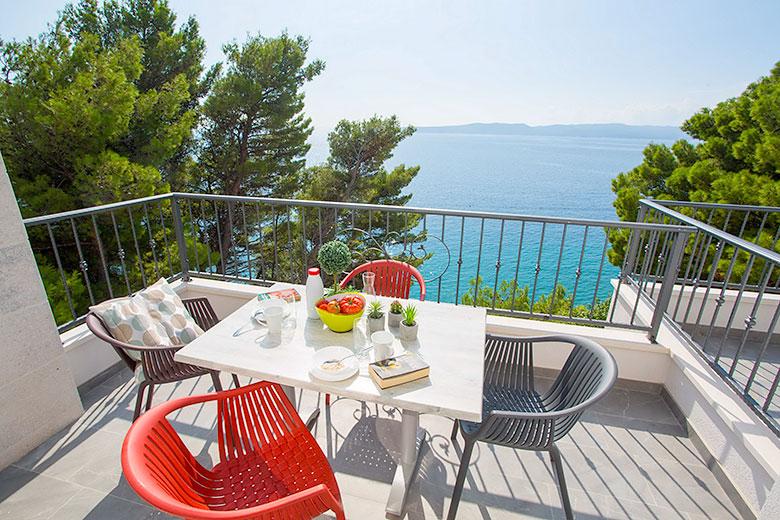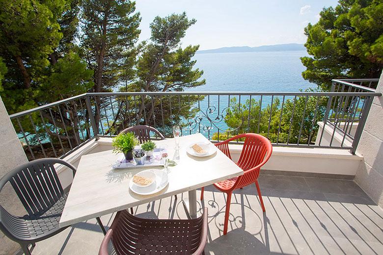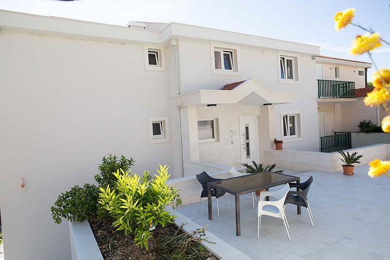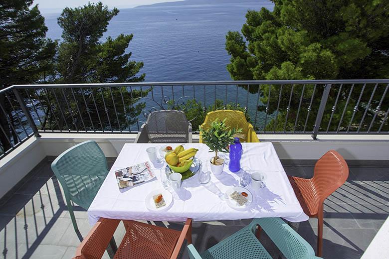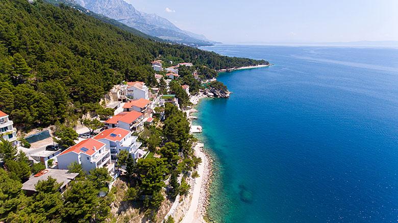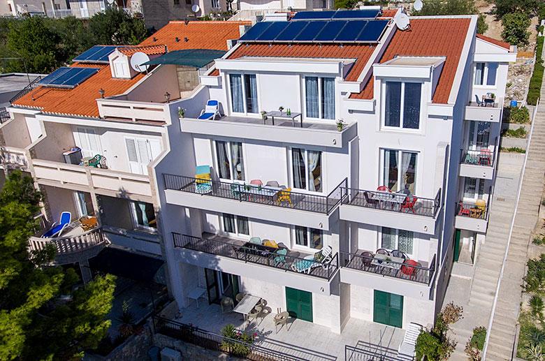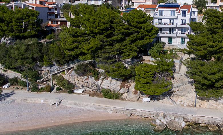 Vila se nahaja neposredno ob modrem morju in čudoviti prodnati plaži. Daleč od prometa in običajnega poletnega vrveža je idealen kraj za vaš miren in prijeten dopust. Preprosti in moderni apartmaji nudijo vse, kar potrebujete.