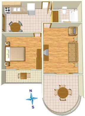 Apartma za dve osebi, možnost dveh dodatnih ležišč (46 m2)