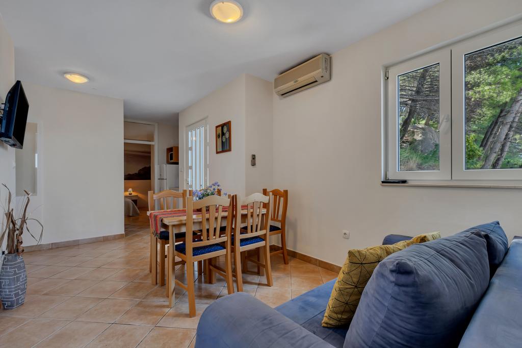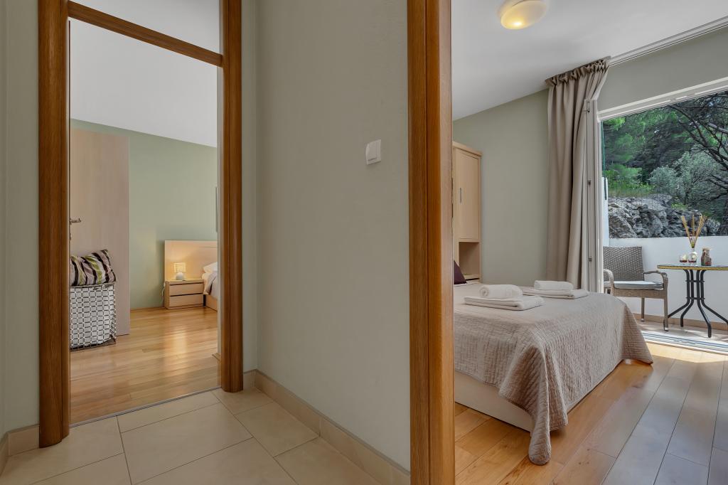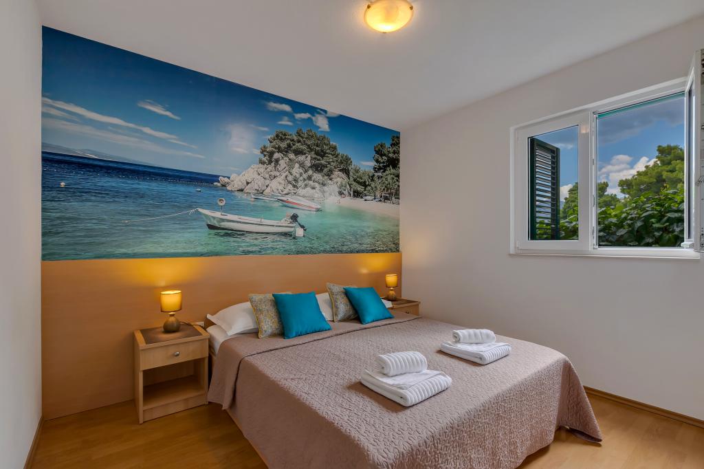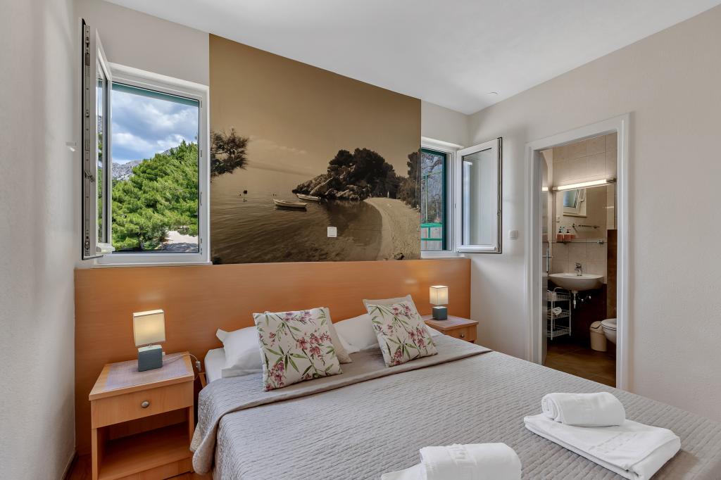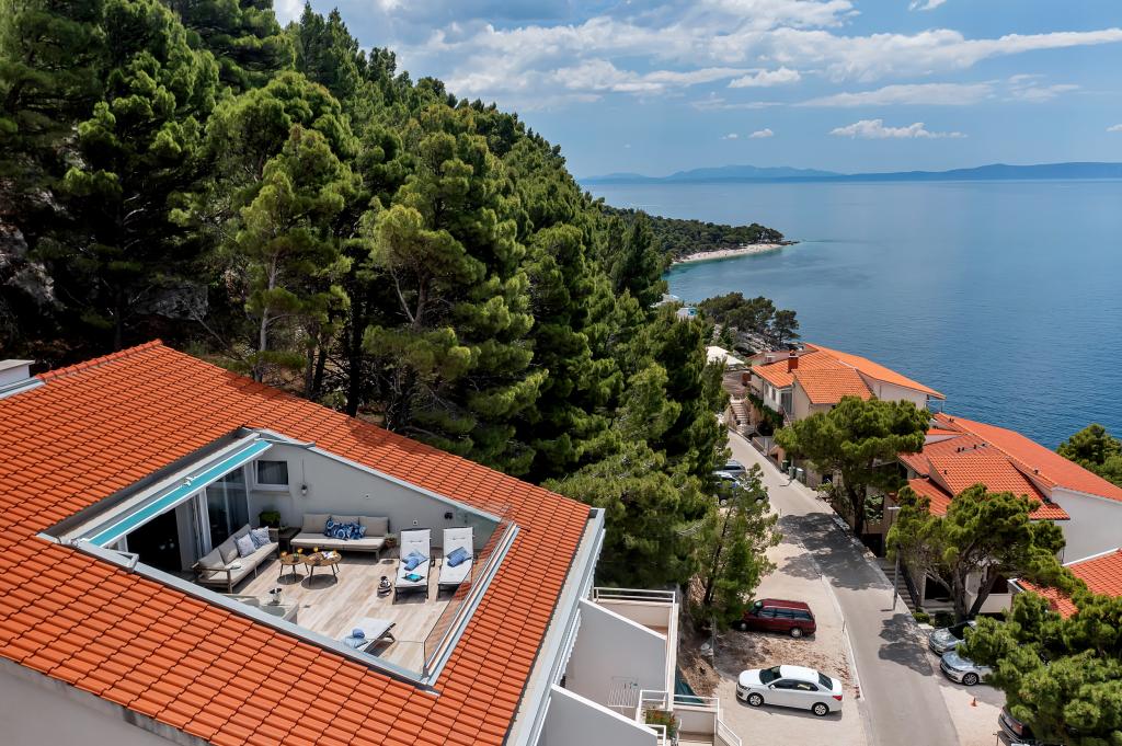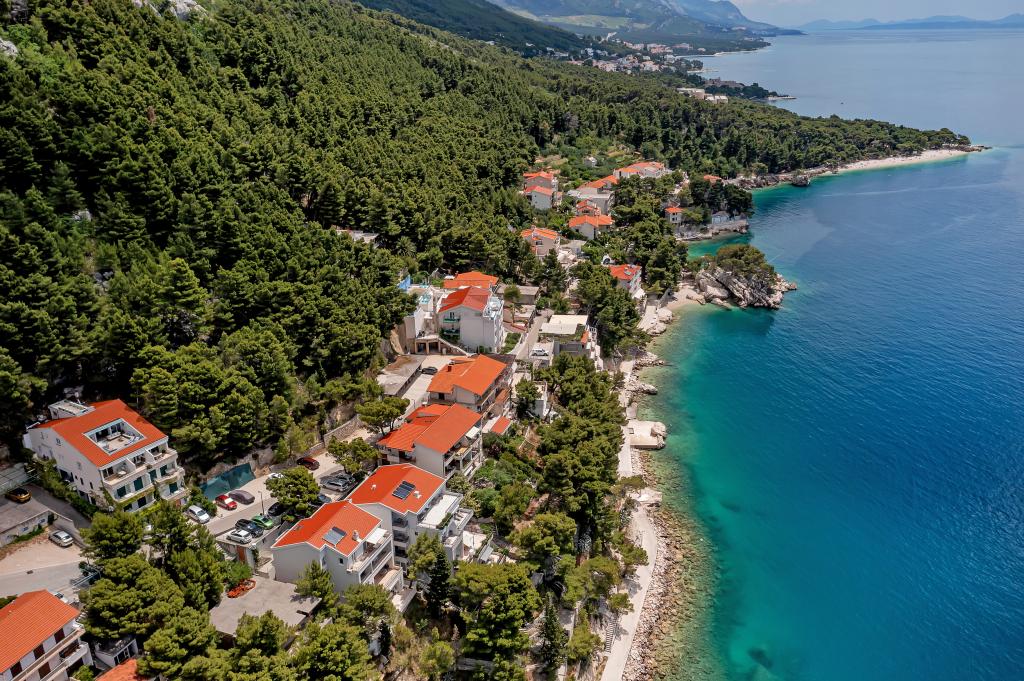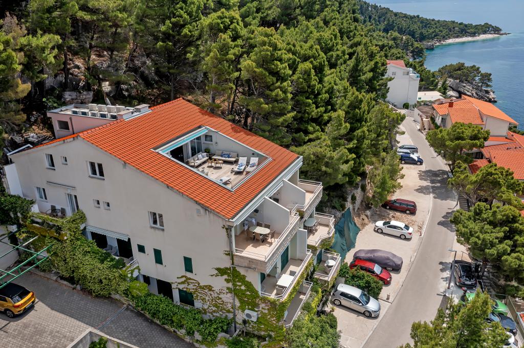 Naša hiša se nahaja v mirnem in zelenem delu Brela, ki se nahaja 50 metrov od morja. Do plaže, ki se nahaja neposredno pod hišo, lahko pridete po zasebnih stopnicah. Znamenita plaža Punta rata se nahaja približno 500 metrov od hiše, središče mesta pa je oddaljeno približno 10-15 minut hoje po čudoviti pokrajini ob morju. Vsi apartmaji so klimatizirani in imajo satelitsko televizijo ter dostop do interneta.