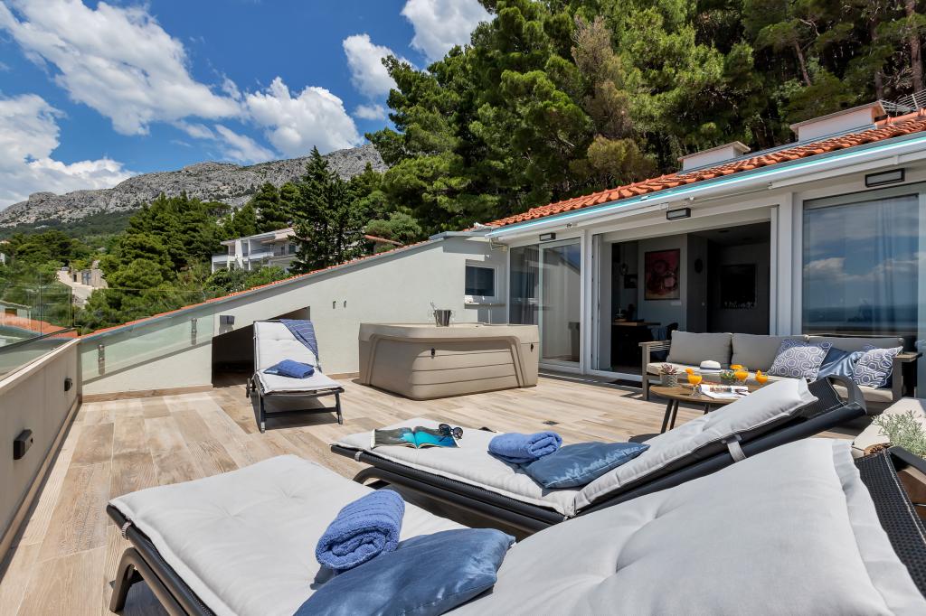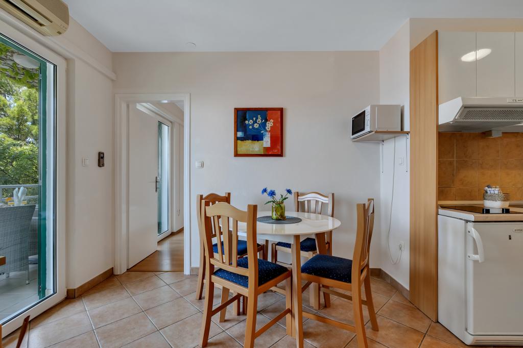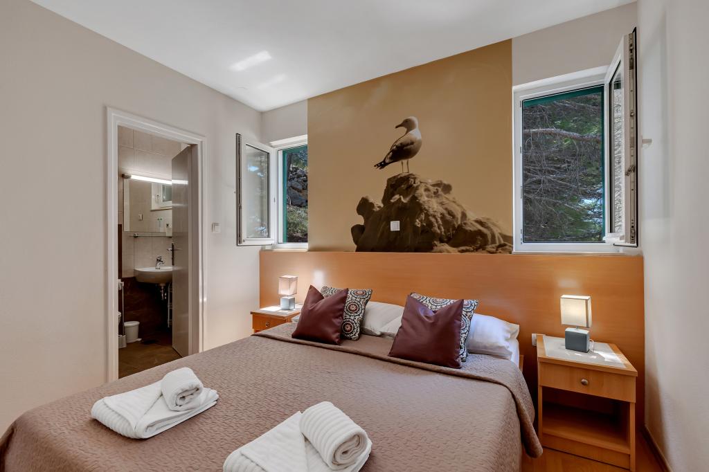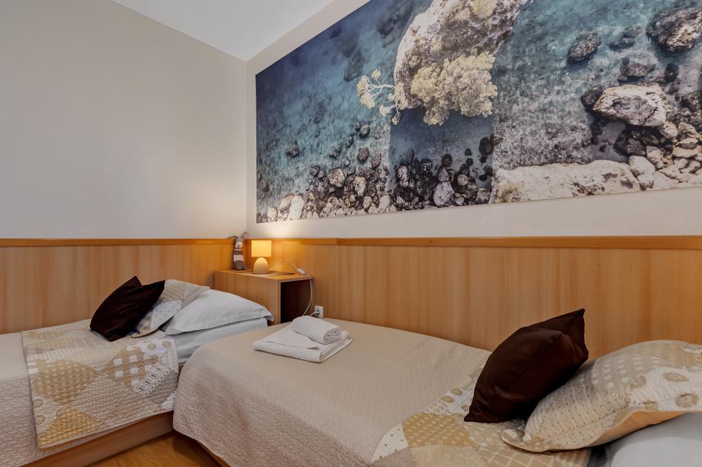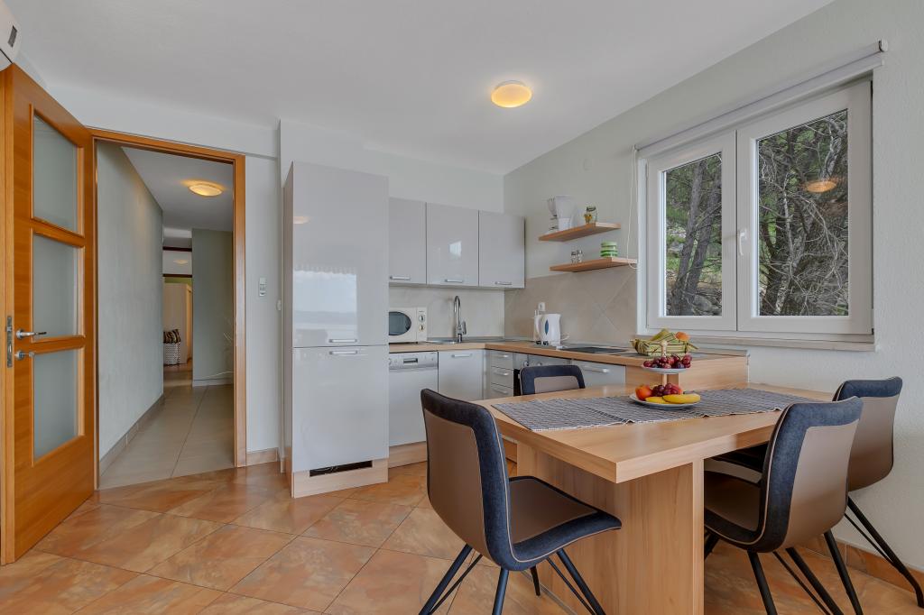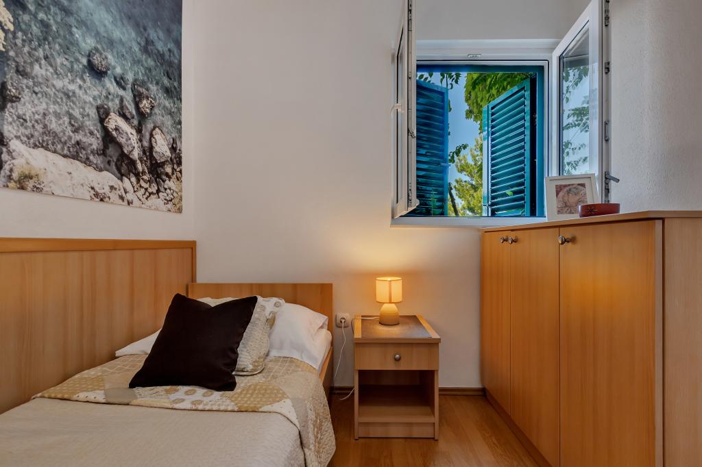 Naša hiša se nahaja v mirnem in zelenem delu Brela, ki se nahaja 50 metrov od morja. Do plaže, ki se nahaja neposredno pod hišo, lahko pridete po zasebnih stopnicah. Znamenita plaža Punta rata se nahaja približno 500 metrov od hiše, središče mesta pa je oddaljeno približno 10-15 minut hoje po čudoviti pokrajini ob morju. Vsi apartmaji so klimatizirani in imajo satelitsko televizijo ter dostop do interneta.